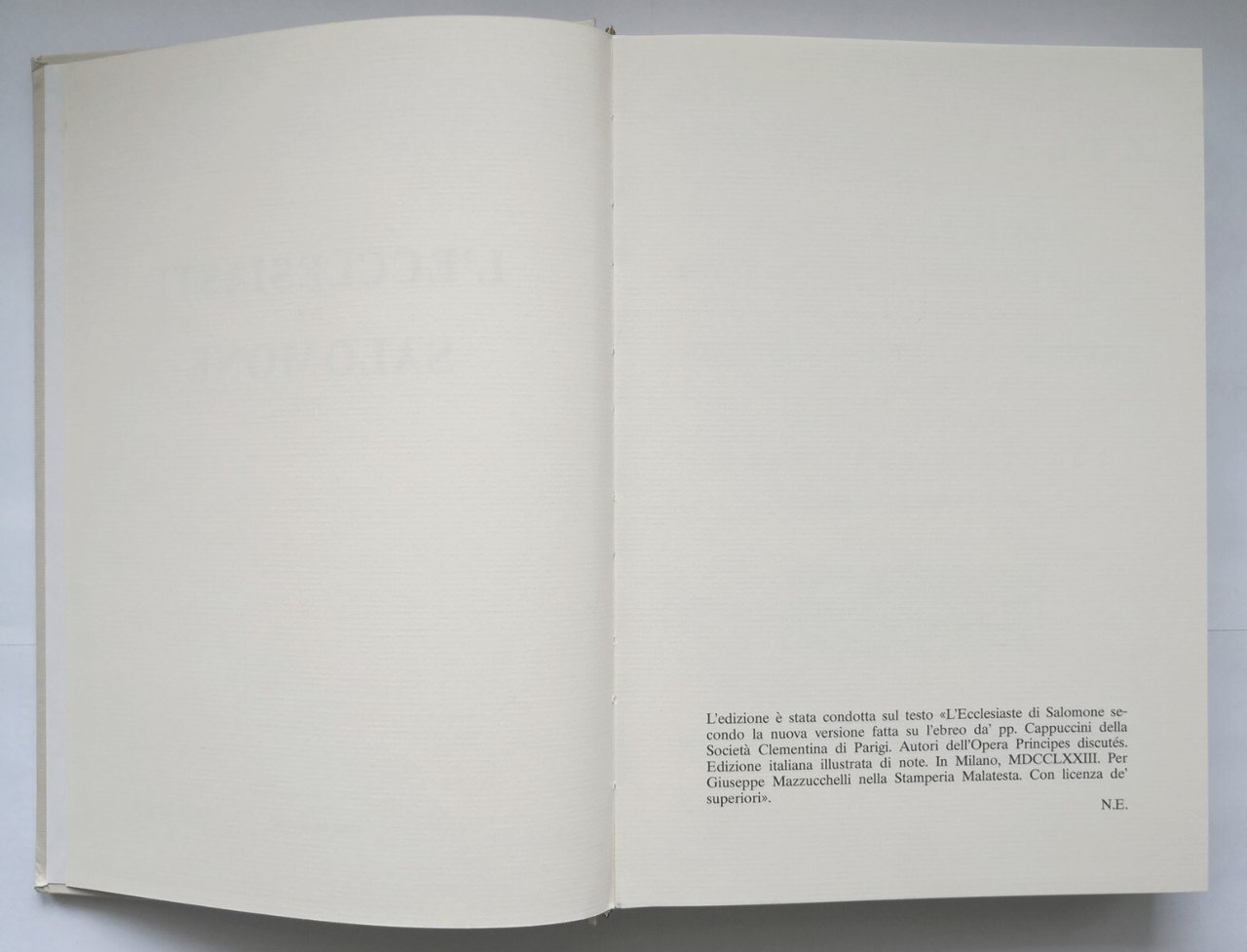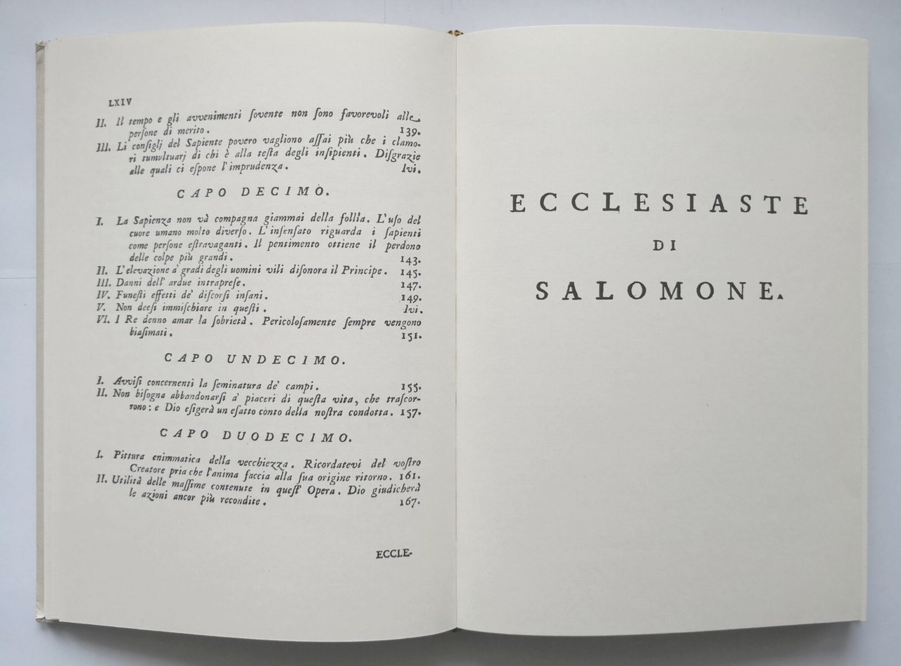 L'ECCLESIASTE DI SALOMONE reprint dell'edizione Mazzucchelli del 1773.