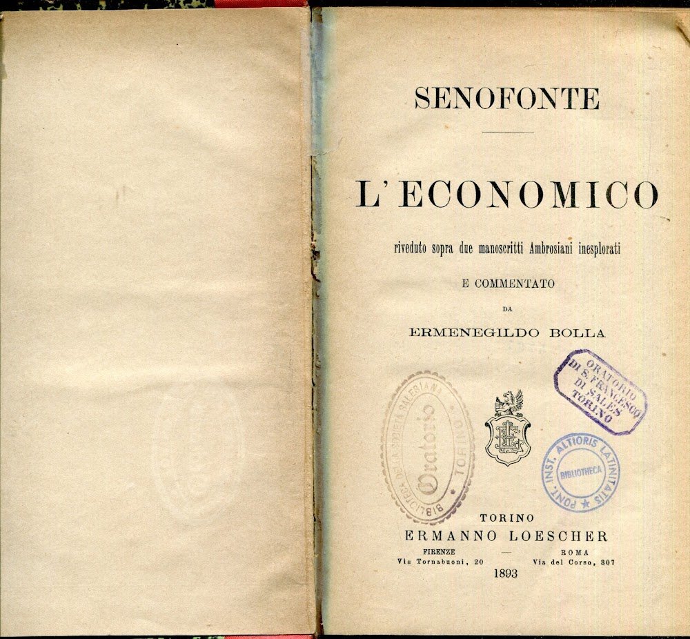 L'Economico, riveduto sopra due manoscritti Ambrosiani inesplorati e commentato da Ermenegildo Bolla