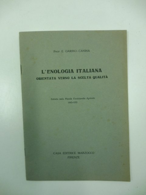 L'enologia italiana orientata verso la scelta qualita' Estratto dalla Piccola Enciclopedia Agricola, 1943-XXI