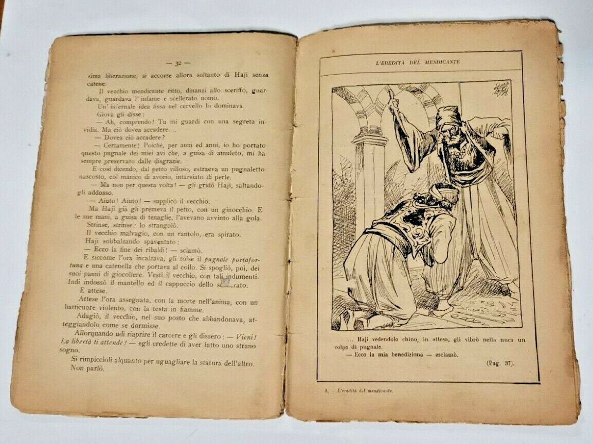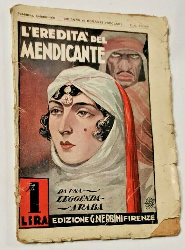 L'EREDITA' DEL MENDICANTE di Franco Bello Da una leggenda araba. Nerbini Editore 1930. 46 pagine, 2 belle illustrazioni in bianco e nero di Giove Toppi. A fine volume racconto: La dada del Sahara. Copertina editoriale in carta illustrata a colori. Dimensioni 15x21 cm. Stato di conservazione: buono (pagine ingiallite, strappetti alle pagine, copertina sciupata con strappi e piccole mancanze).