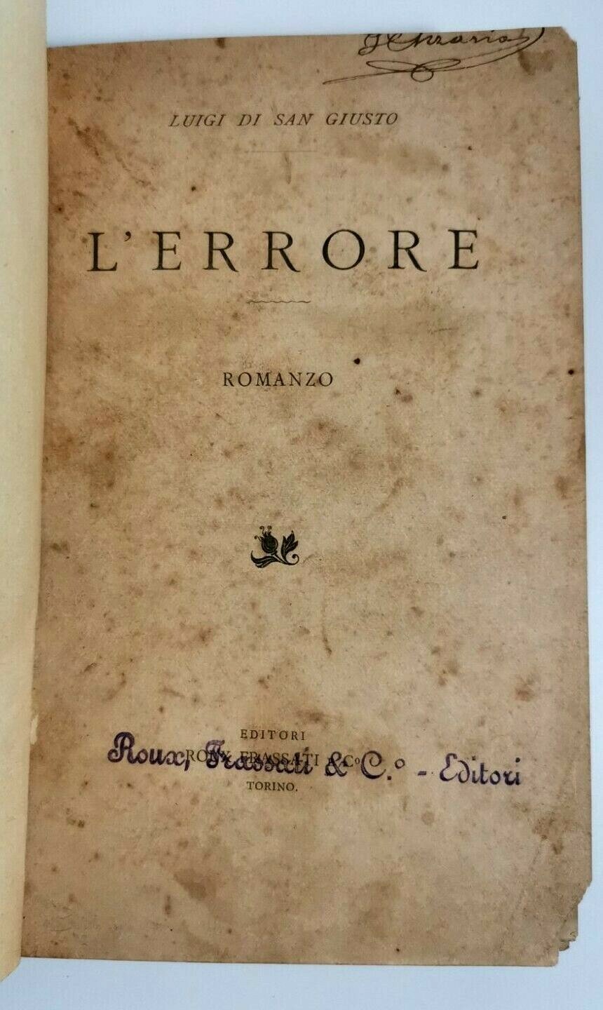L'ERRORE di Luigi di San Giusto 1896 Roux e Frassati Libro Antico Romanzo I ediz