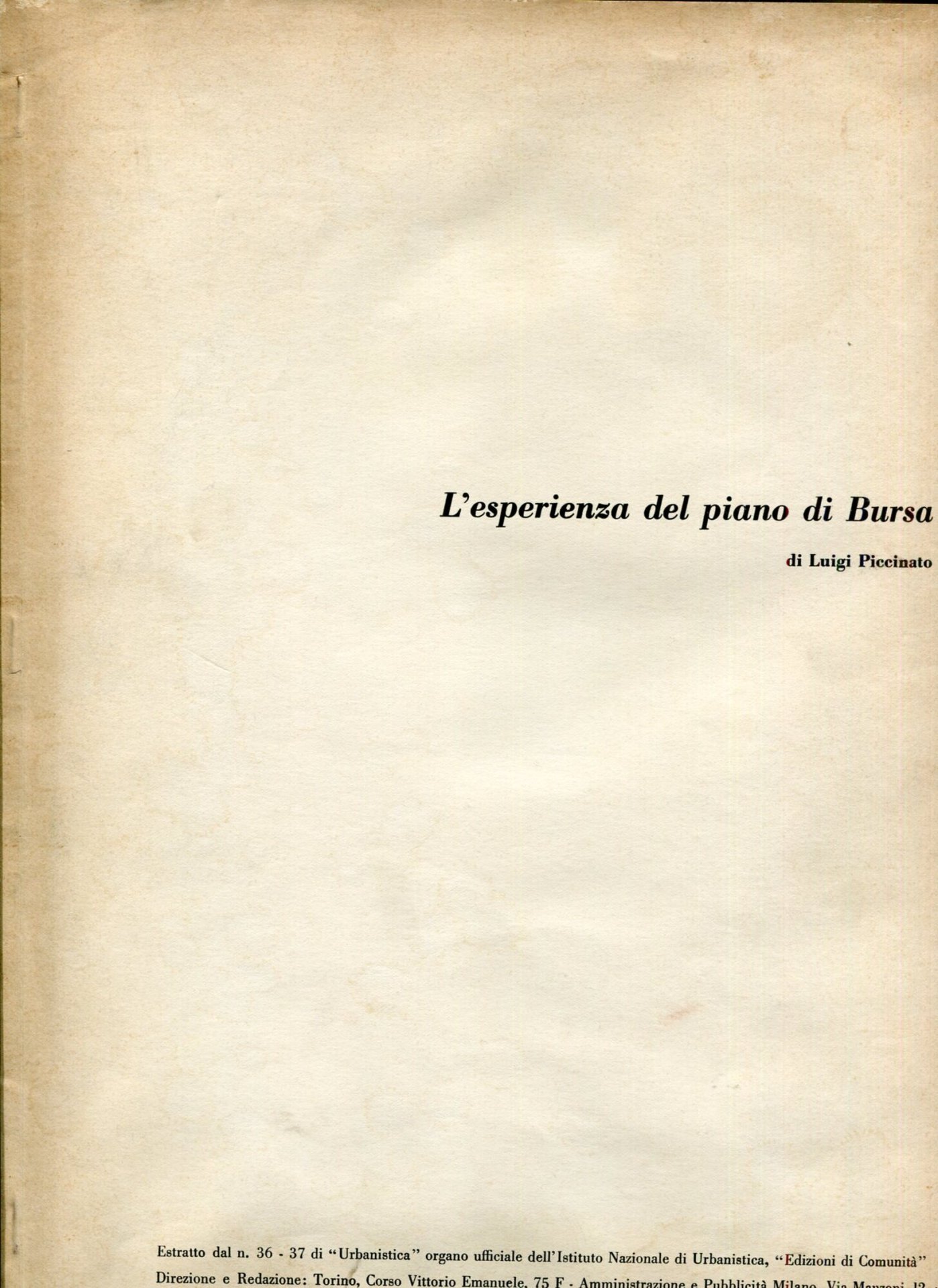 P. 110-136 : illustrazioni nel testo, 1 tavola a colori ripiegata; 32 cm. Brossura. Estratto da: Urbanistica, n. 36-37. Lievi bruniture ai margini della cop. Buono (Good) .