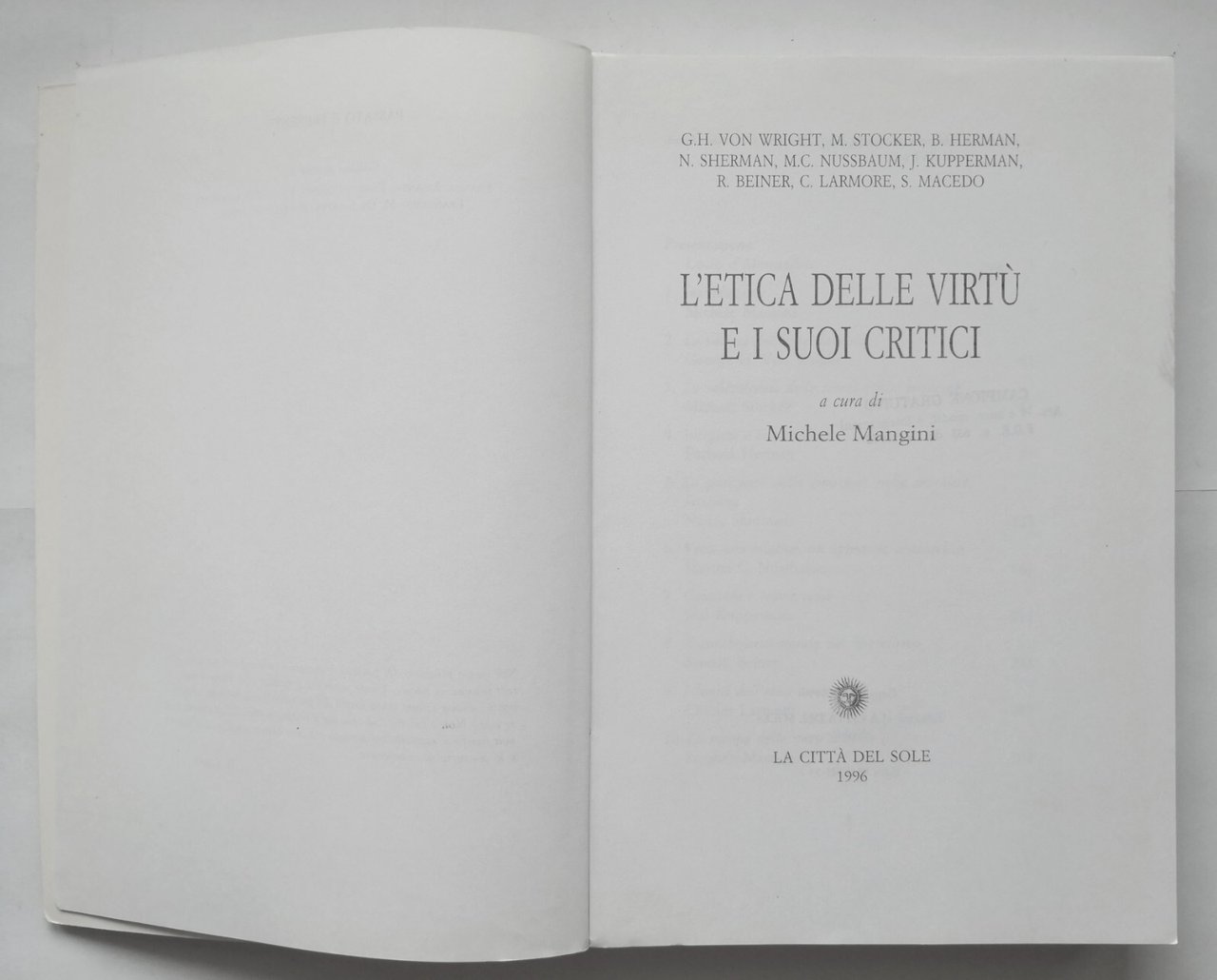 L'ETICA DELLE VIRTÙ E I SUOI CRITICI a cura di Michele Mangini. Scritti di G.H. Von Wright, M. Stocker, B. Herman N. Sherman, M.C. Nussbaum, J. Kupperman R. Beiner, C. Larmore, S. Macedo.