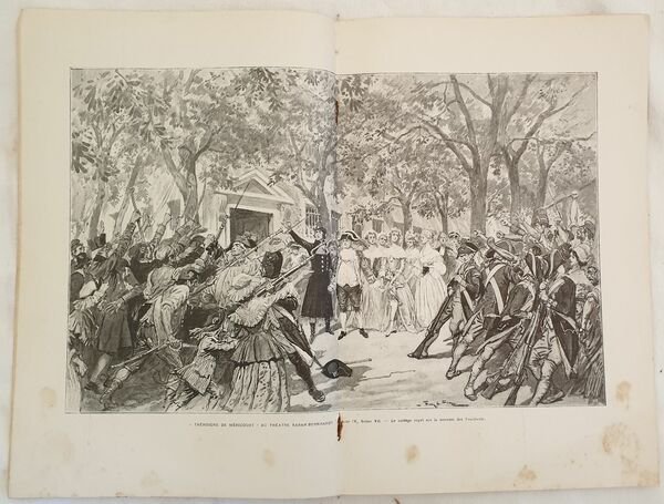 Edizione del 1902 della commedia teatrale Theroigne de Mericourt di Paul Hervieu (1857-1915). Theroigne de Mericourt è stata rappresentata per la prima volta il 23 dicembre 1902 al Teatro Sarah Bernhardt. Numerose illustrazioni di Georges Scott. In buone condizioni Copertina assente. Legatura in buone condizioni. All'interno le pagine si presentano in ottime condizioni con rare fioriture. In 4. Dim. 30x20,5 cm. Pp. 31. Edition of 1902 of the theatral play Theroigne de Mericourt by Paul Hervieu (1857-1915).<BR><BR>Varennes has been rappresented fort he first time the 23rd of december 1902 in the theatre Sarah Bernhardt. Diffeent illustrations by Georges Scott. In good conditions.Cover is missing. Binding in good conditions. Pages in very good conditions with occasional foxings. In 4. Dim. 30x20,5 cm. Pp. 31.