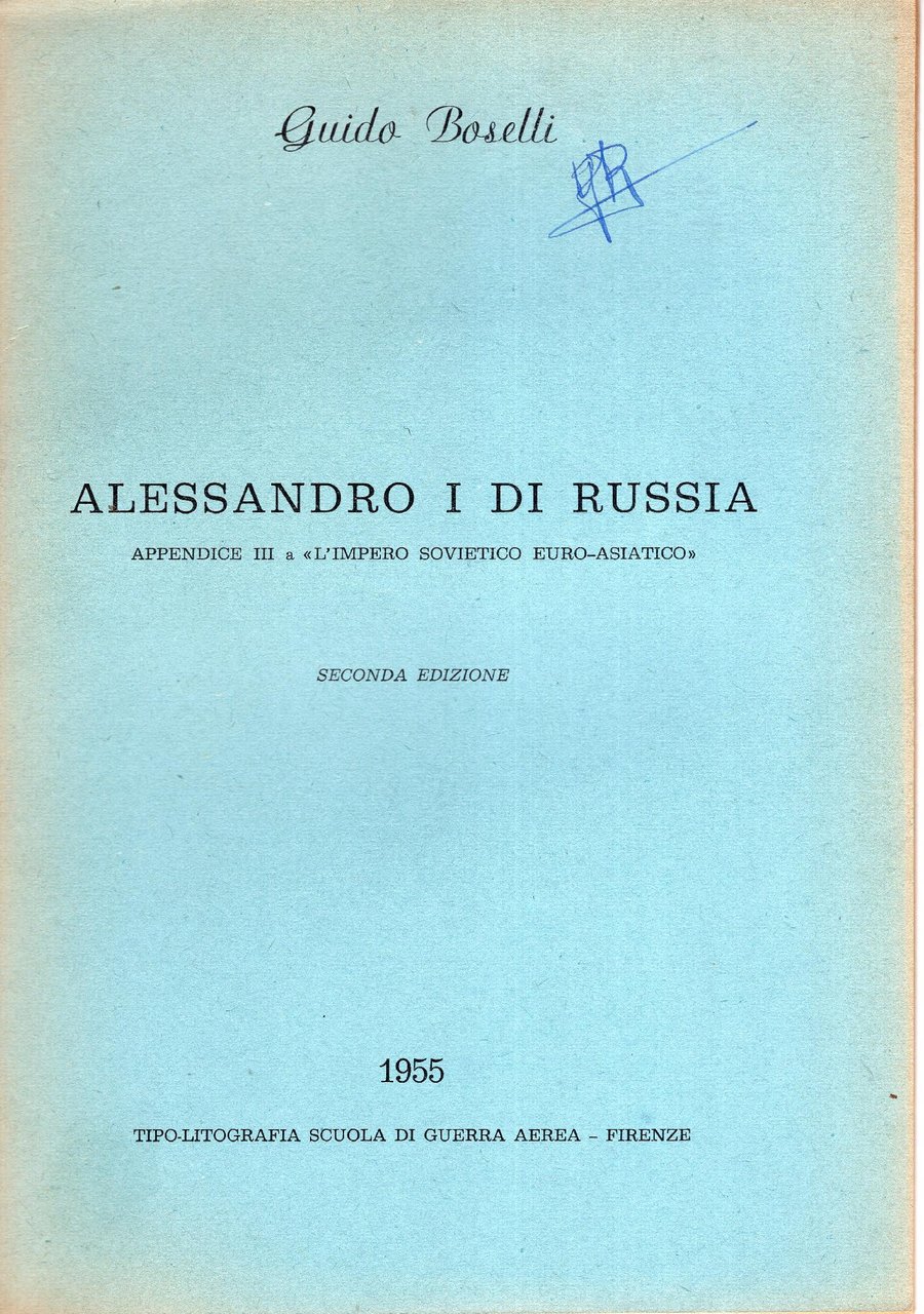 258 p. ; 25 cm, brossura, sigla nome dell'ex proprietario alla cop.. Allegato "Alessandro 1 di Russia" in lito, 41 p. Buono (Good) .