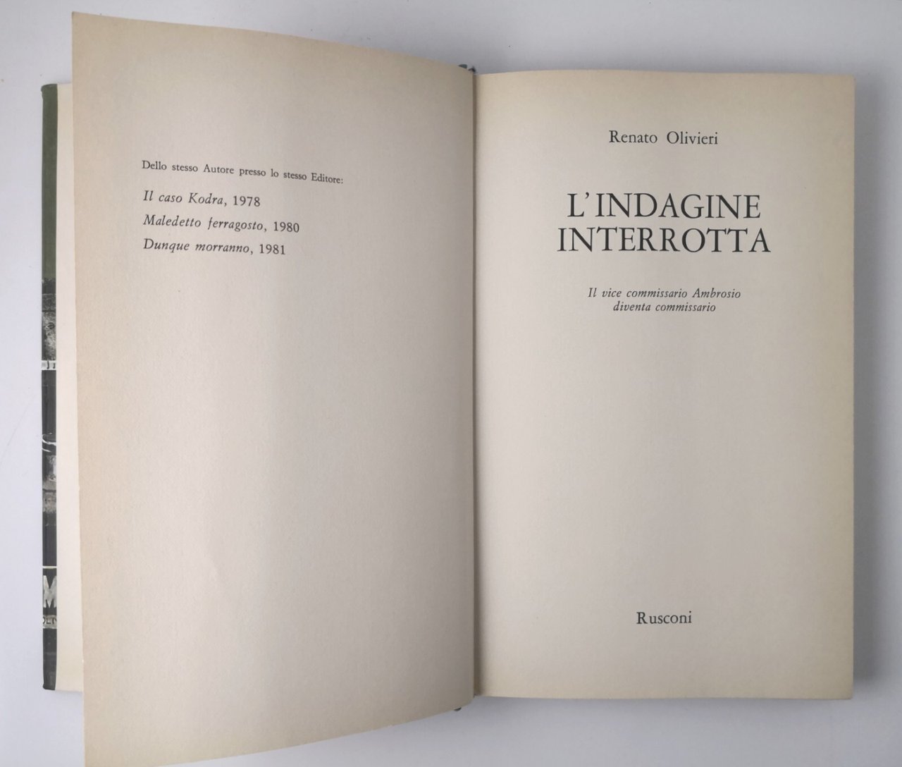 L'INDAGINE INTERROTTA di Renato Olivieri 1983 Rusconi Romanzo Giallo Libro I ed