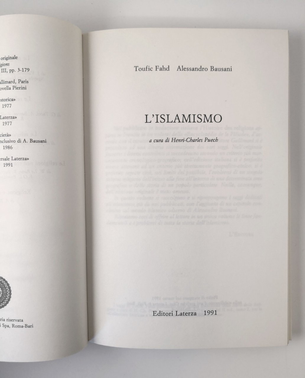 L'ISLAMISMO a cura di Henry-Charles Puech. Toufic Fahd, Alessandro Bausani. Traduzione di Maria Novella Pierini.