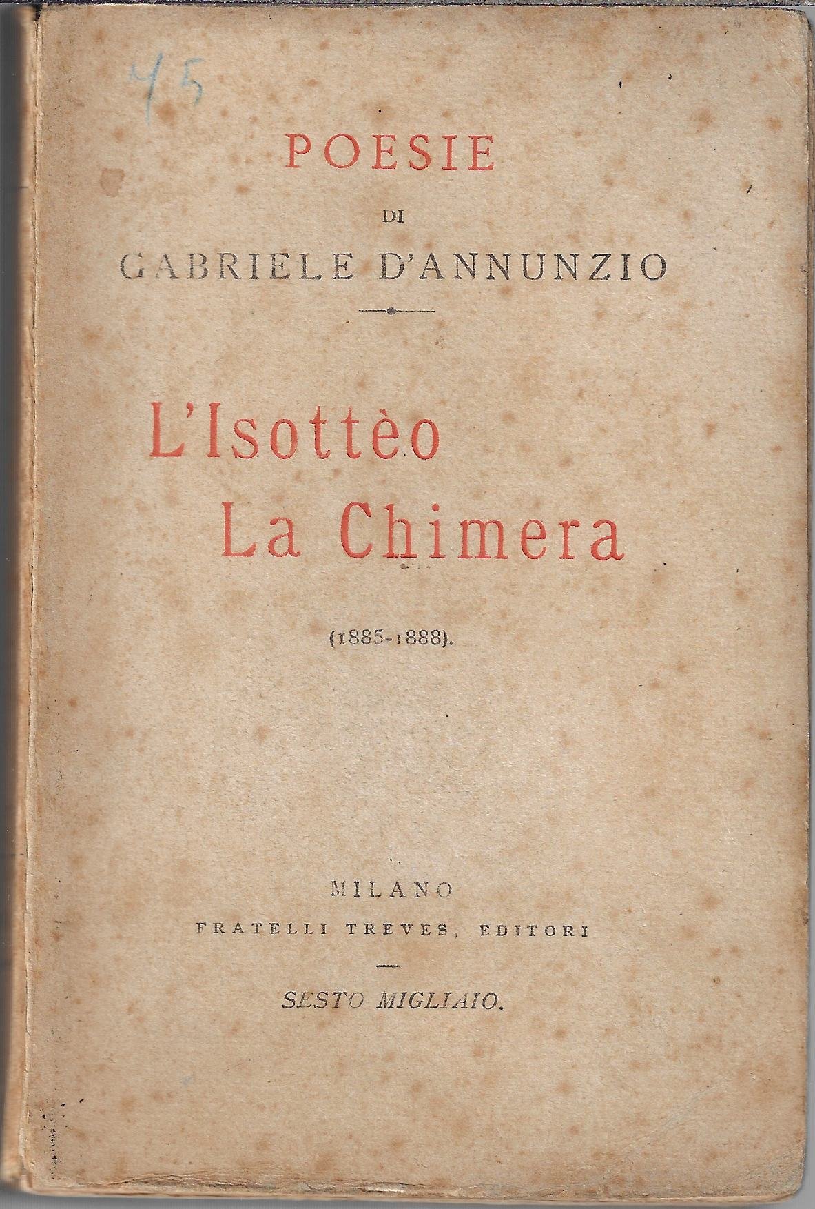 Fa parte di: Poesie di Gabriele D'Annunzio. 16. p. 103 Buono (Good) segni del tempo, fioriture diffuse, ingiallimento, dorso e legatura restaurati, perfetta fruibilità del testo, firma di appartenenza.
