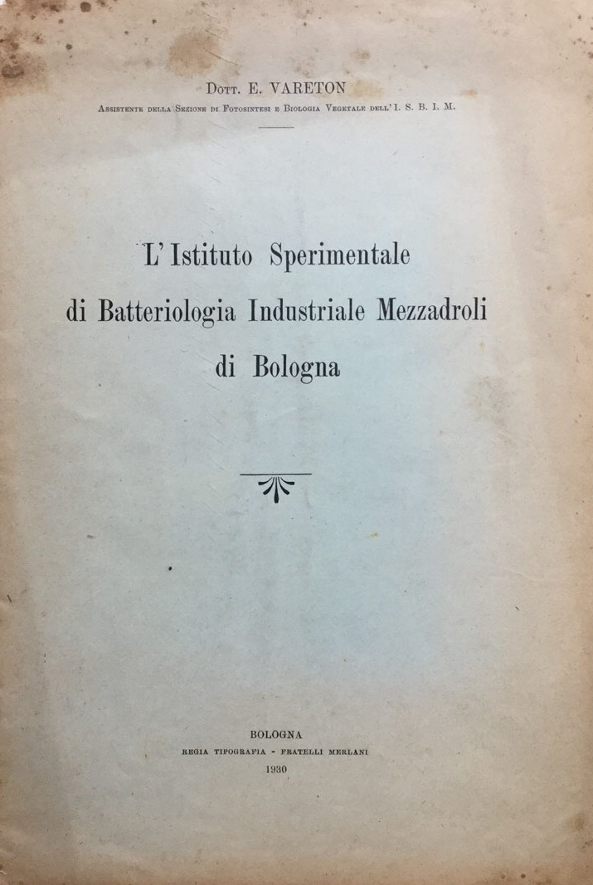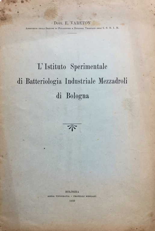L'Istituto Sperimentale di Batteriologia Industriale Mezzadroli di Bologna