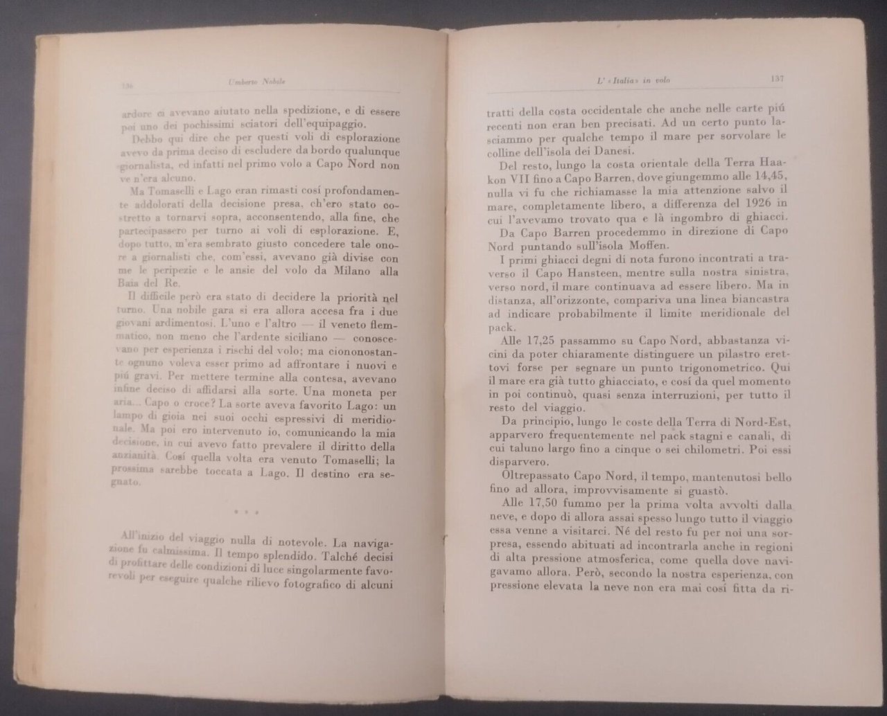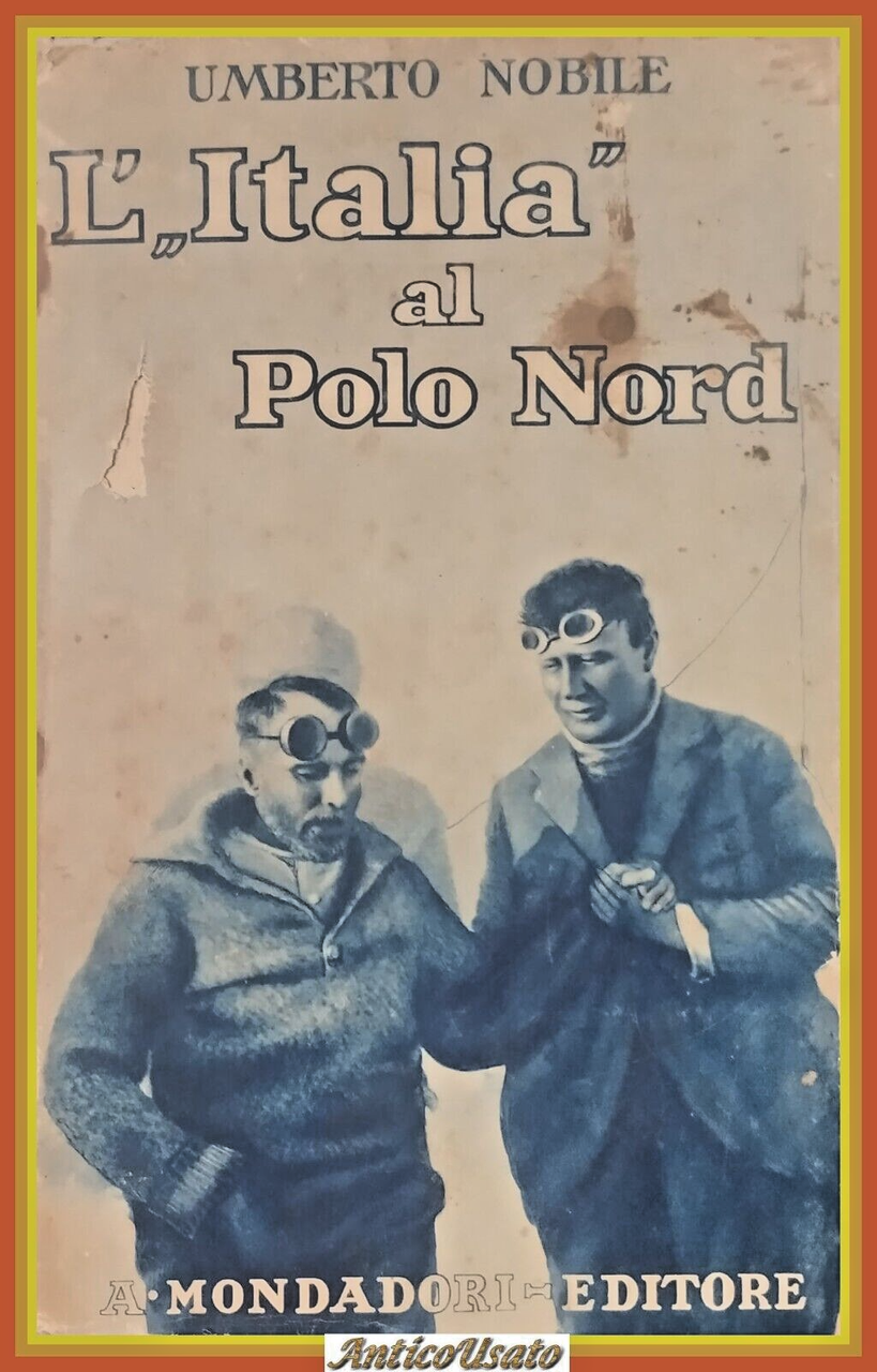 L'ITALIA AL POLO NORD di Umberto Nobile. Mondadori Editore, 1930 . XV, 463 pagine, otto illustrazioni in bianco e nero fuori testo e una carta a colori. Copertina editoriale in brossura. Stato di conservazione: buono (pagine ingiallite, copertina sciupata con piccole mancanze) Libro usato saggistica viaggi esplorazioni