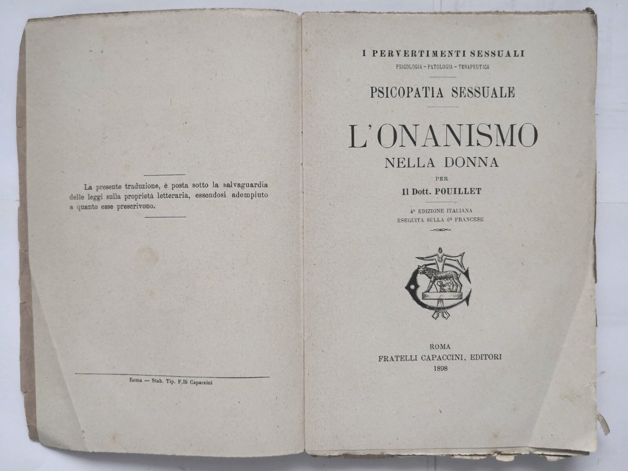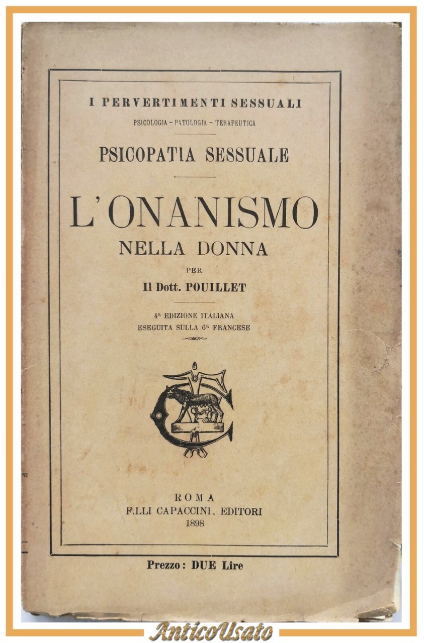 L'ONANISMO NELLA DONNA di Pouillet 1898 Capaccini Libro Antico psicopatia sessua