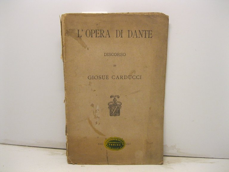 In 8, pp. 62. Br. ed. Edizione originale di questo discorso storico - letterario tenuto in Roma.