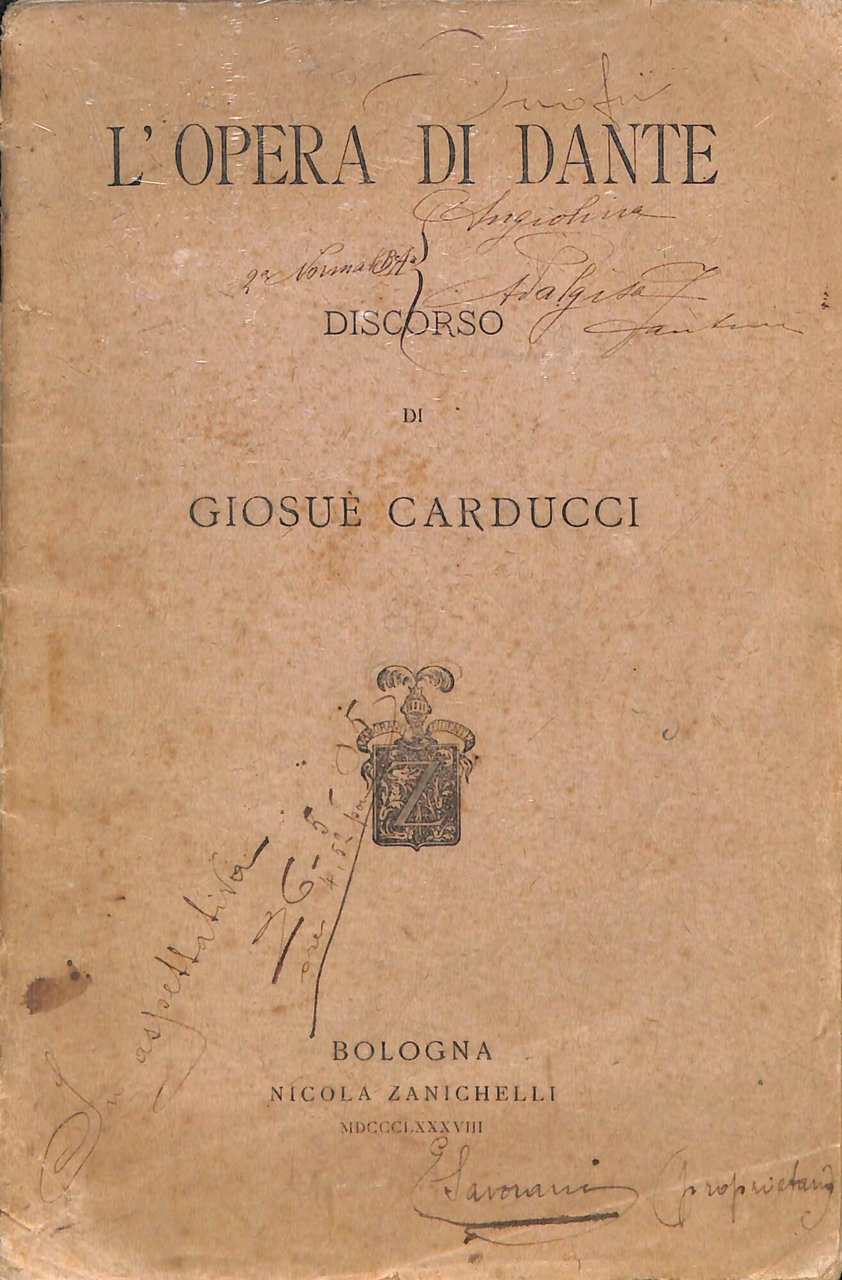 Bologna, Zanichelli, 1888, in 8vo, Brossura editoriale, 62 pp. 801 - V In Ottavi (15-23cm ) Buono (Good) Buono