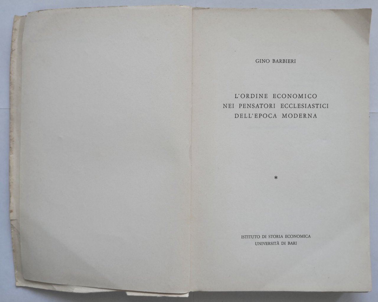 L'ORDINE ECONOMICO NEI PENSATORI ECCLESIASTICI DELL'EPOCA MODERNA di Gino Barbieri