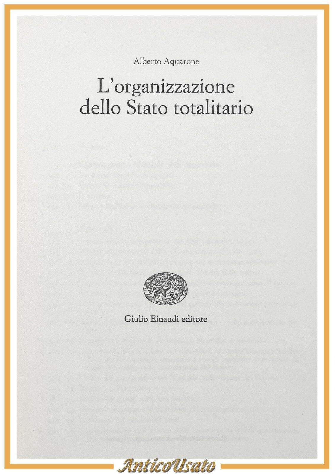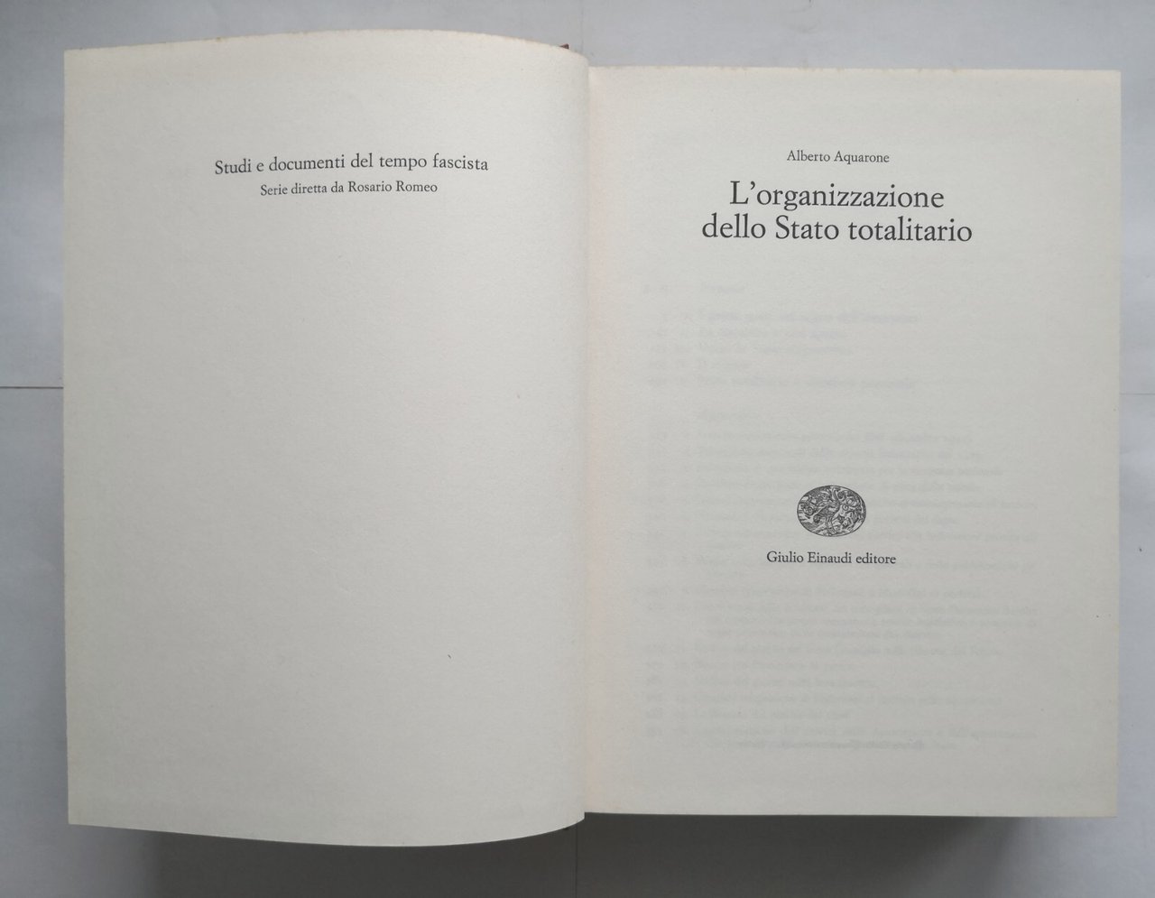L'ORGANIZZAZIONE DELLO STATO TOTALITARIO di Alberto Aquarone 1965 Einaudi Libro