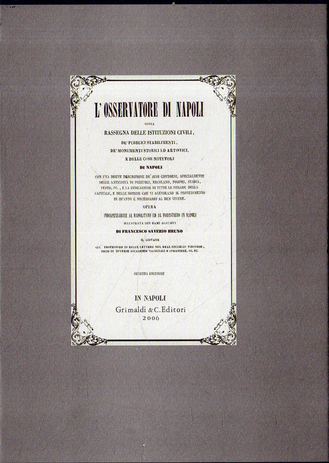 2006. Collana "Il Forestiero (Guide e descrizioni dei Napoli e dintorni)/2"Copertina editoriale in brossura morbida con sovracoperta alettata. X, 592 p. : ill. ; 25 cm Ripr. facs. dell\'ed.: Napoli, Del Vaglio 1855. In cofanetto.