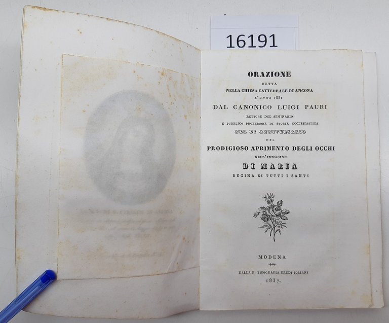 L. Pauri Orazione nella cattedrale di anniversario miracolo di Maria Regina Soliani 1837