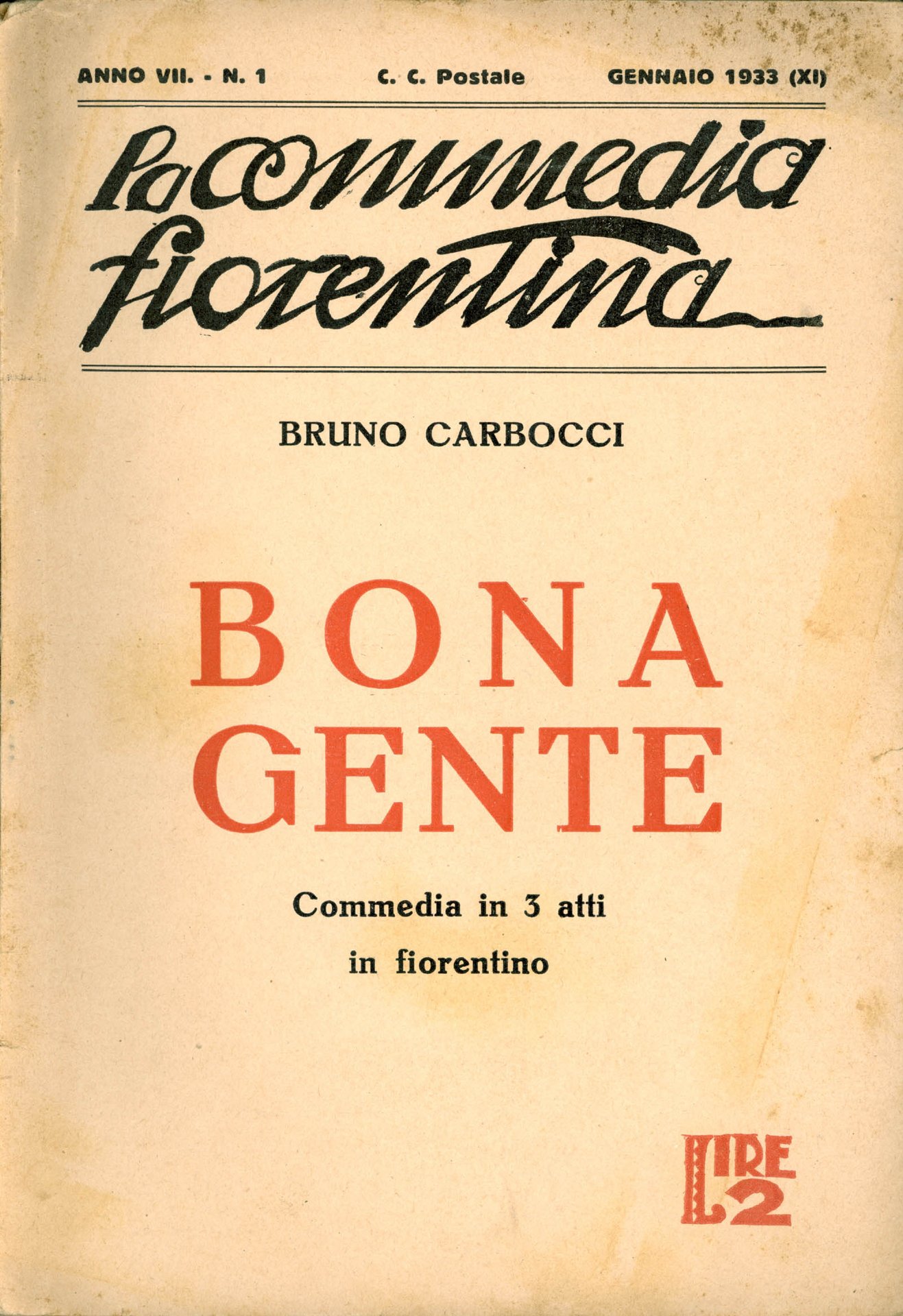 Raccolta mensile di commedie in fiorentino. Anno VII, n. 1 (gennaio 1933).398 � Ba In Quarti ( 24-30cm ) Buono (Good) Buono