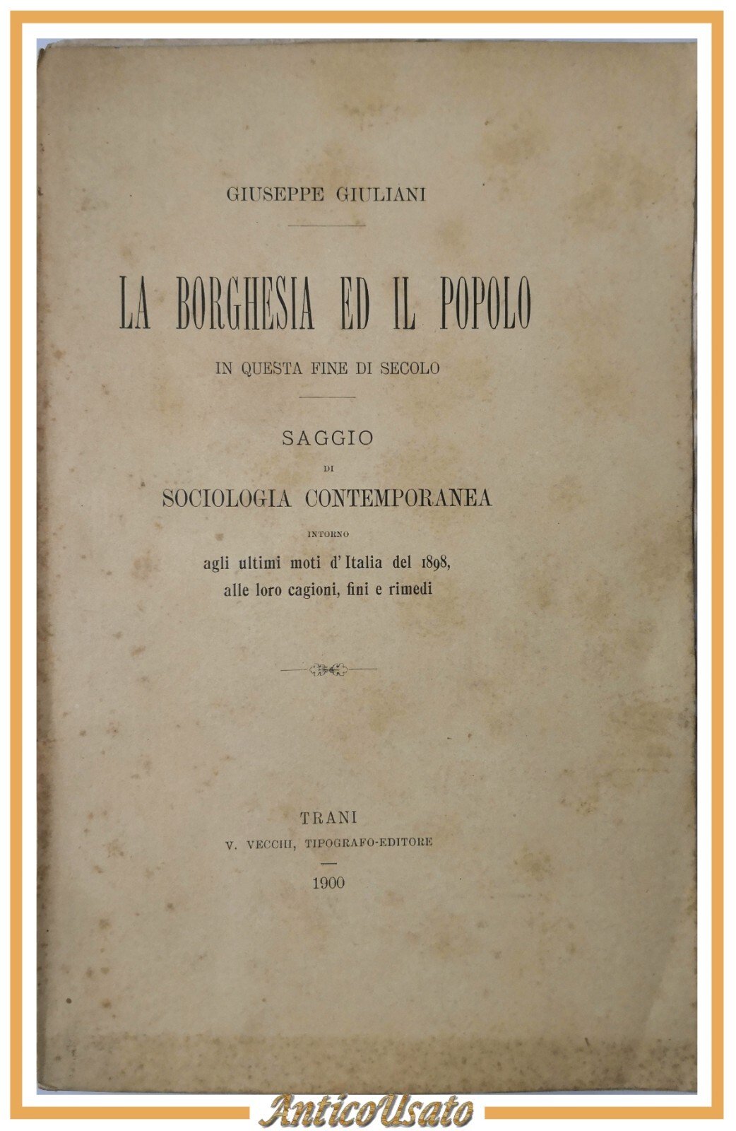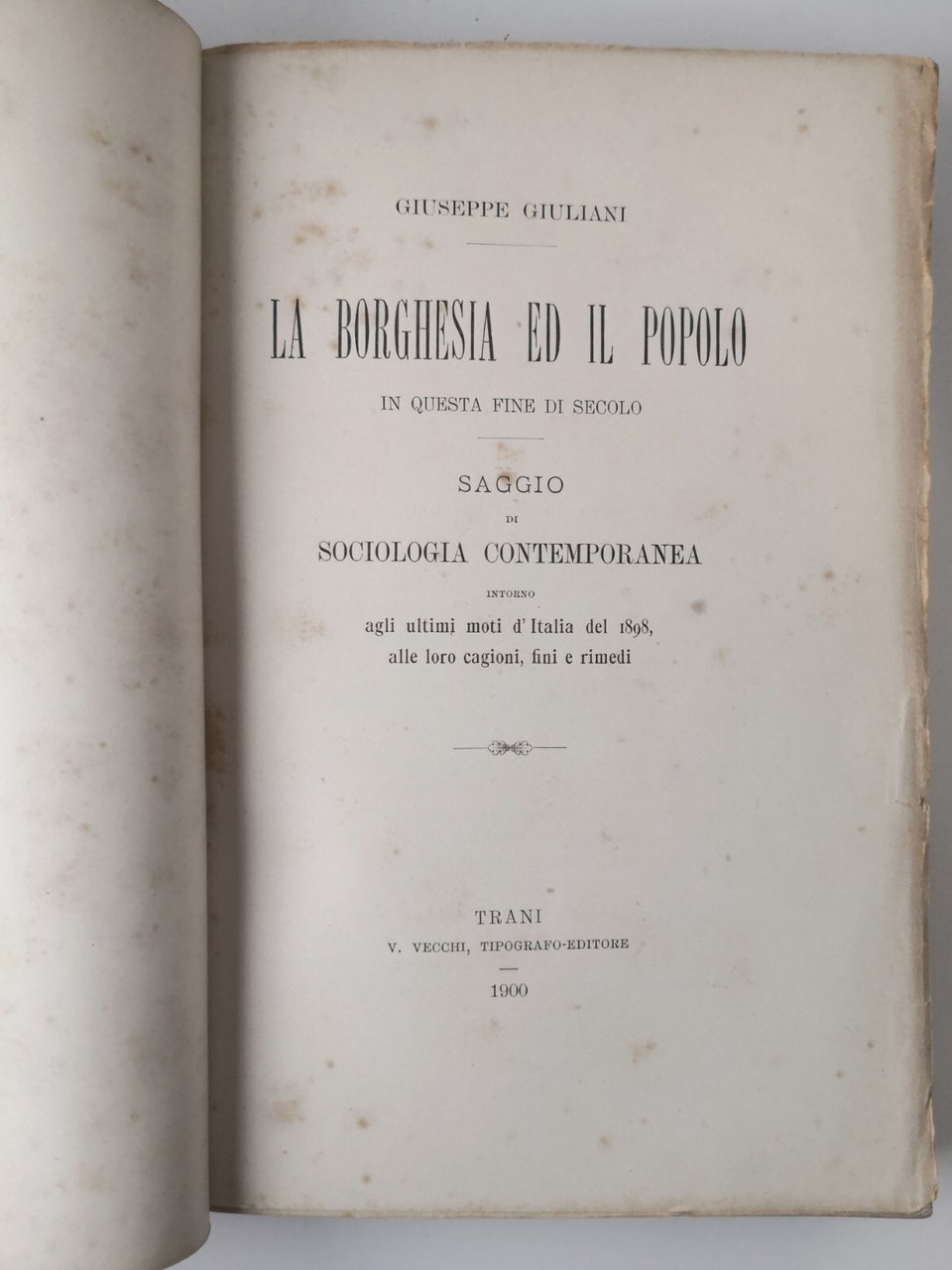 LA BORGHESIA ED IL POPOLO di Giuliani 1900 Vecchi Trani Saggio Sociologia Libro