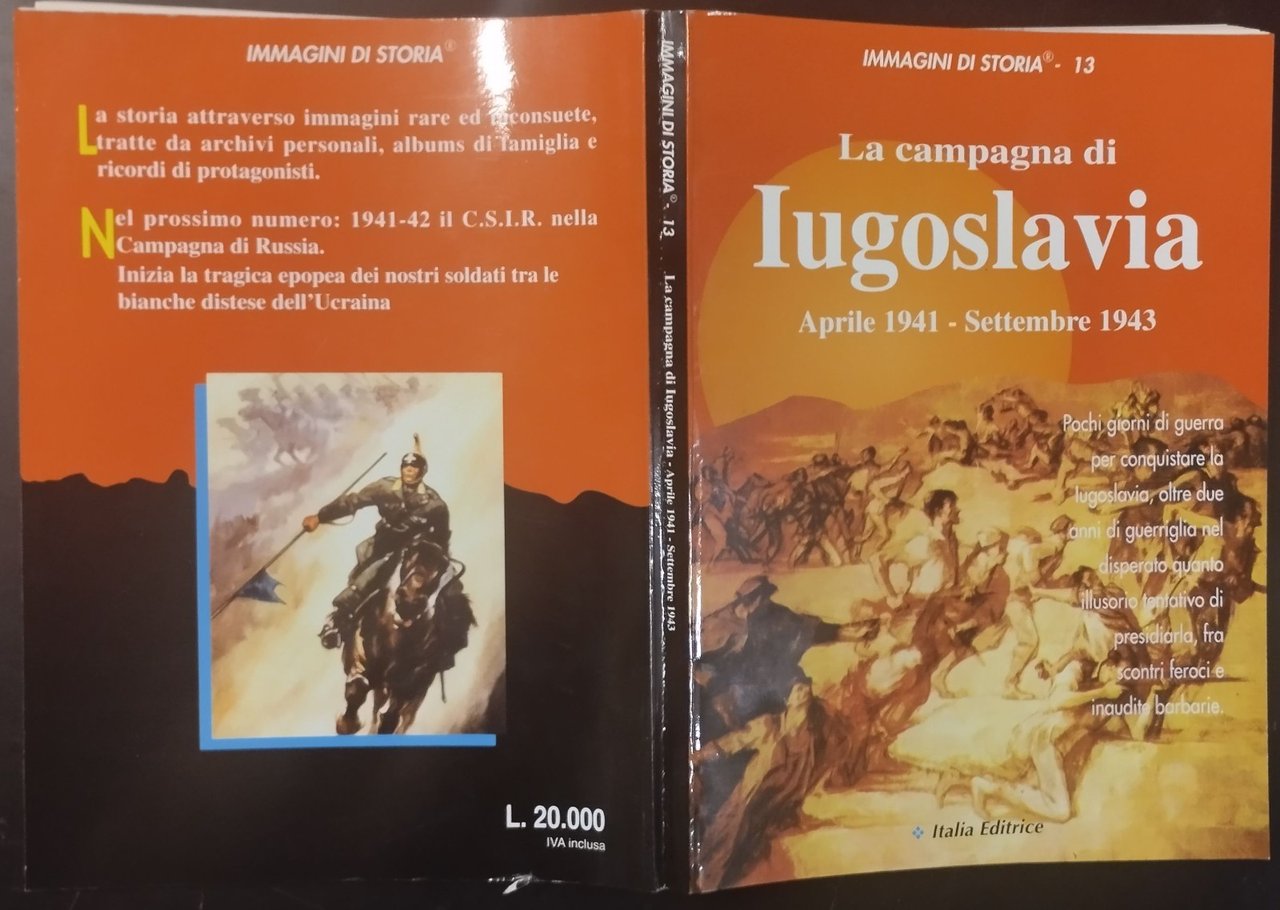 LA CAMPAGNA DI IUGOSLAVIA aprile 1941 settembre 1943.Italia editrice, immagini di storia numero 13, 1996. 176 pagine, ricchissimo di illustrazioni in bianco e nero e a colori nel testo. Copertina editoriale in brossura. Stato di conservazione: QUASI NUOVO