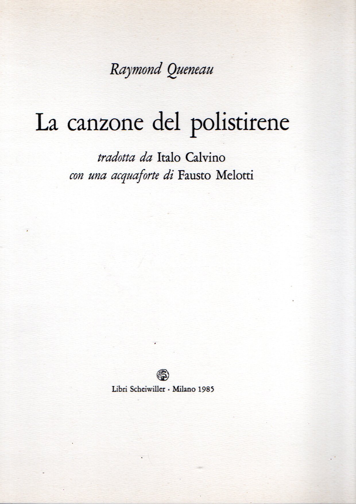 La canzone del polistirene (con una acquaforte di Fausto Melotti) | Livres anciens et modernes | Raymond Queneau, Italo Calvino, Fausto Melotti, ,Raymond Queneau, Italo Calvino, Fausto Melotti