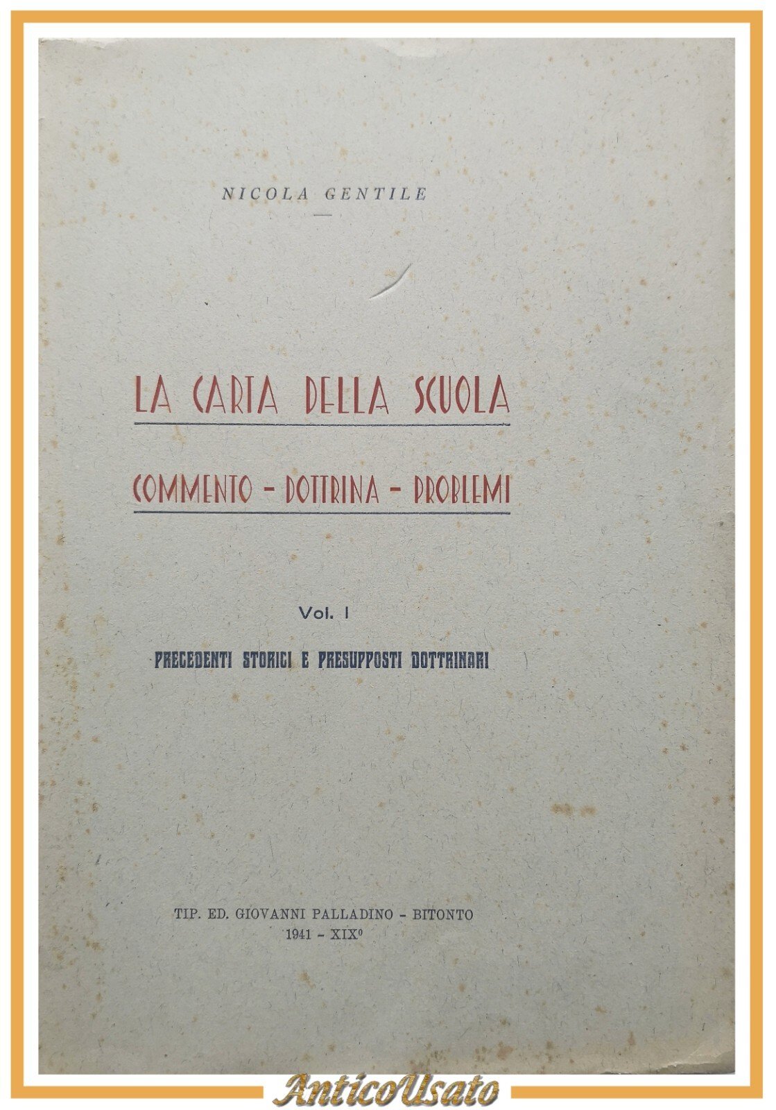 LA CARTA DELLA SCUOLA di Nicola Gentile volume I 1941 Palladino Libro commento