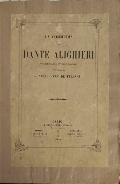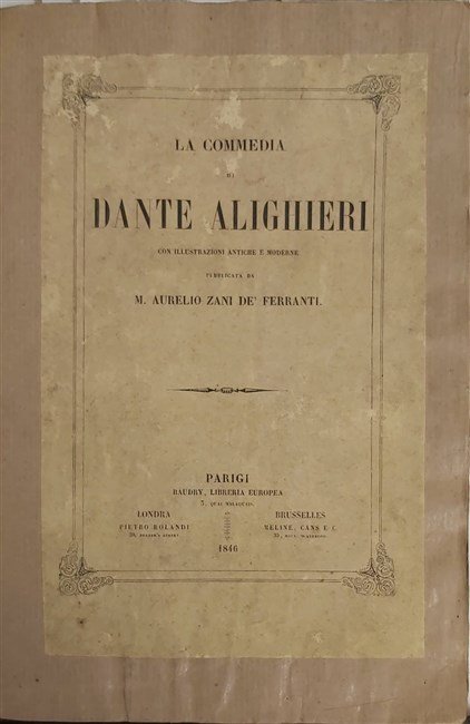 in-4, pp; XX, 230, (2), rileg. mod. in carta con copertina ant. applicata. Ottimo commento ai primi tre canti dell’Inferno. Front. slegato. [455]