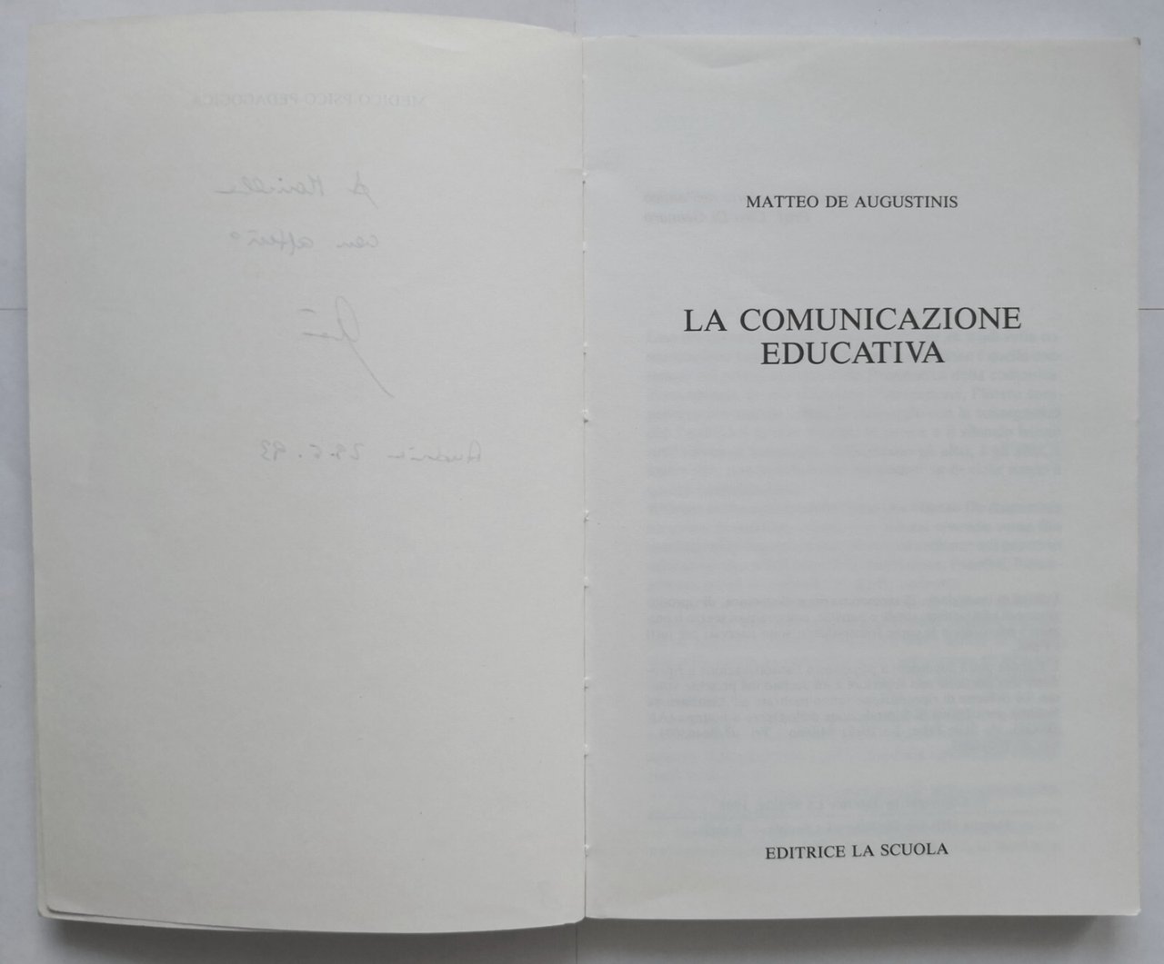 LA COMUNICAZIONE EDUCATIVA di Matteo De Augustinis 1993 Editrice La Scuola Libro