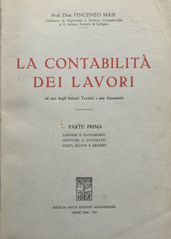 La contabilità dei lavori ad uso degli Istituti Tecnici e per Geometri