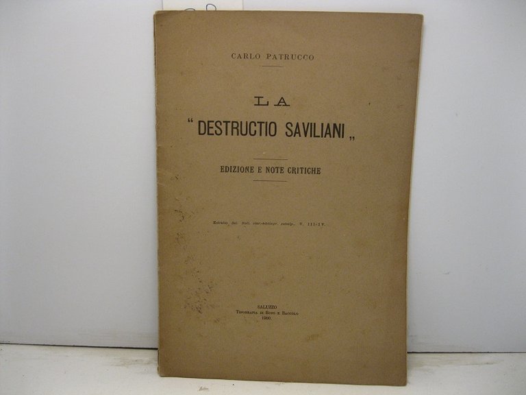 La 'Destructio Saviliani'. Edizione e note critiche Estratto dal BOLL. STOR.-BIBLIOGRAFICO SUBALPINO (V, III-IV)
