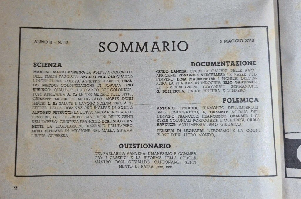 LA DIFESA DELLA RAZZA 1939 ANNO II numero 13 Rivista Dedicata all'Impero Rivista
