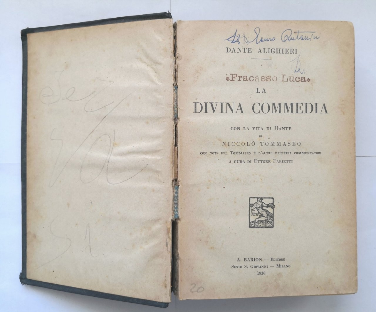 LA DIVINA COMMEDIA di Dante Alighieri con la vita Tommaseo 1930 Barion libro