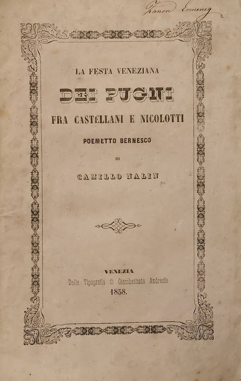 LA FESTA VENEZIANA DEI PUGNI FRA CASTELLANI E NICOLOTTI. POEMETTO BERNESCO