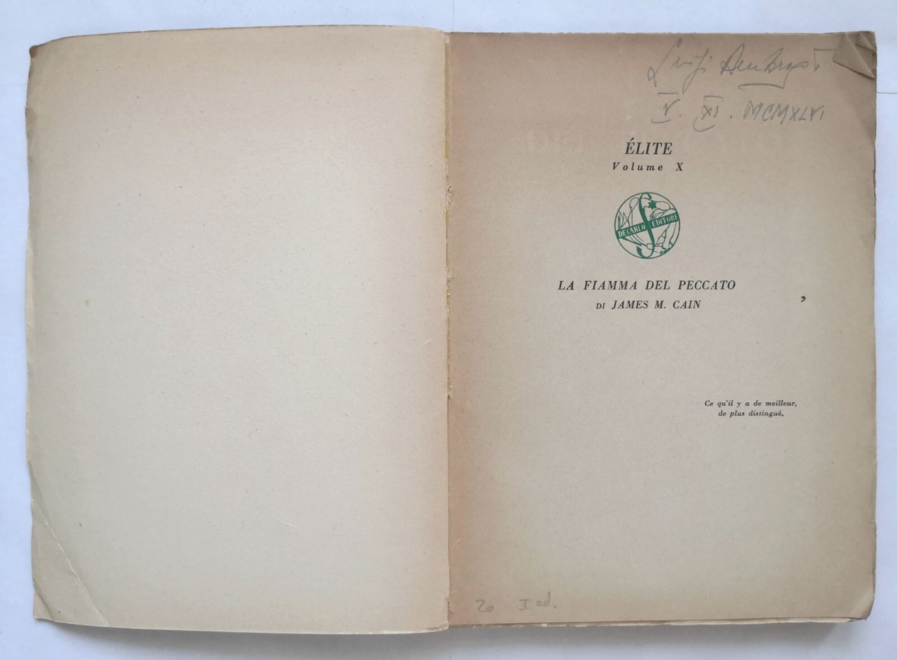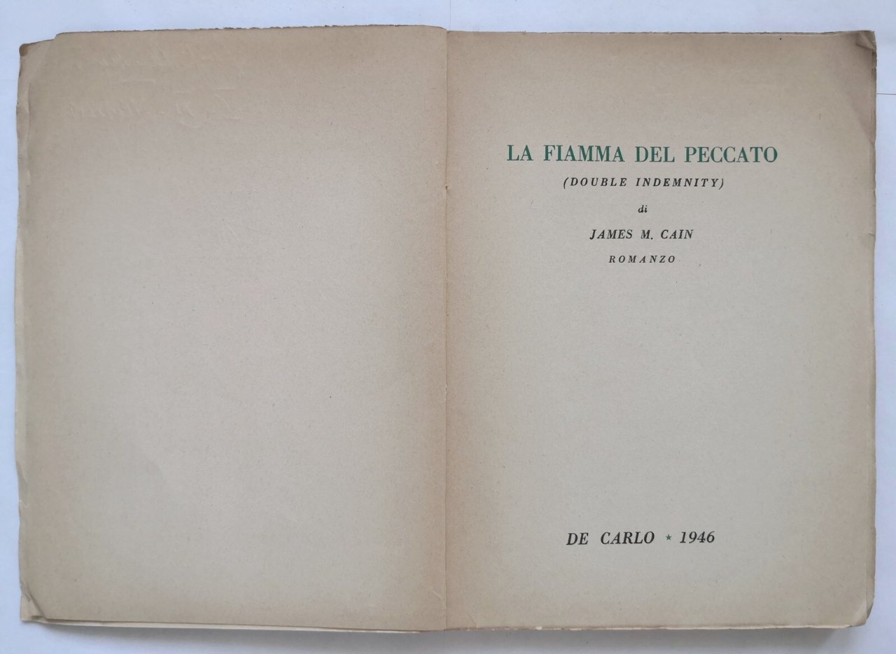 LA FIAMMA DEL PECCATO romanzo di James Cain 1946 De Carlo Libro I edizione
