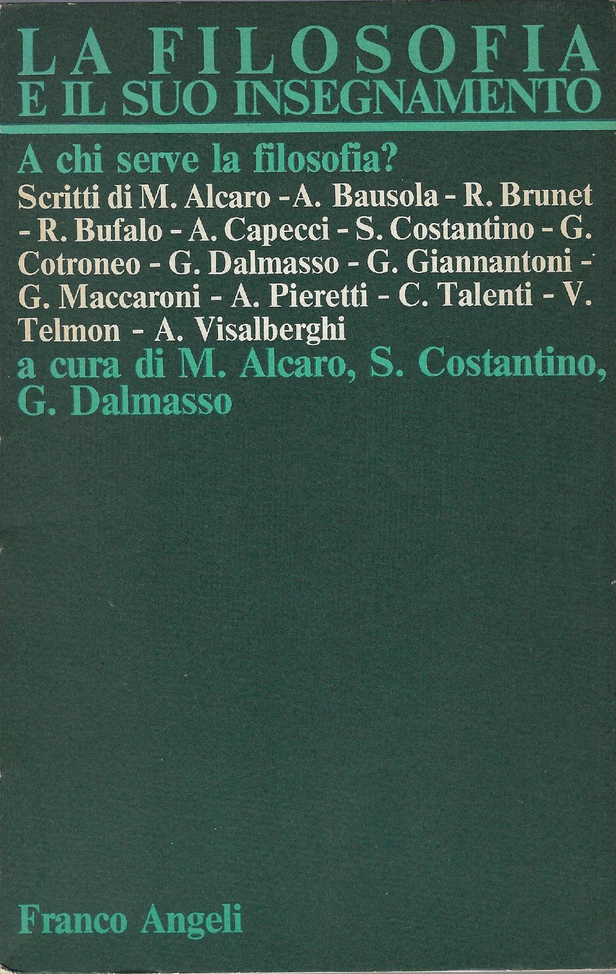 La filosofia e il suo insegnamento : a chi serve la filosofia? : atti del Convegno di studi tenuto nell'ottobre del 1983 presso il Dipartimento di filosofia dell'Università della Calabria