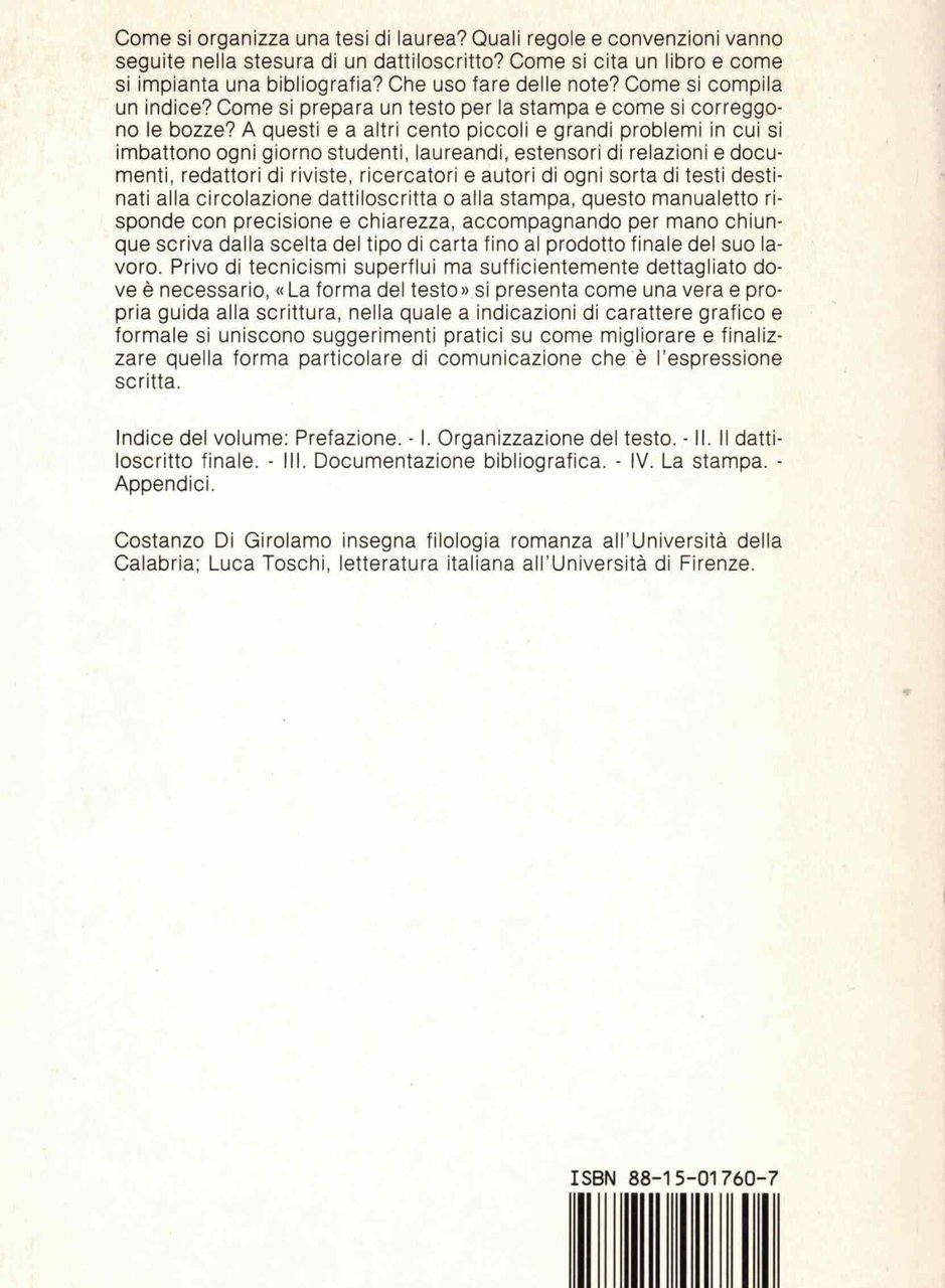 La forma del testo. Guida pratica alla stesura di tesi di laurea, relazioni, articoli, volumi