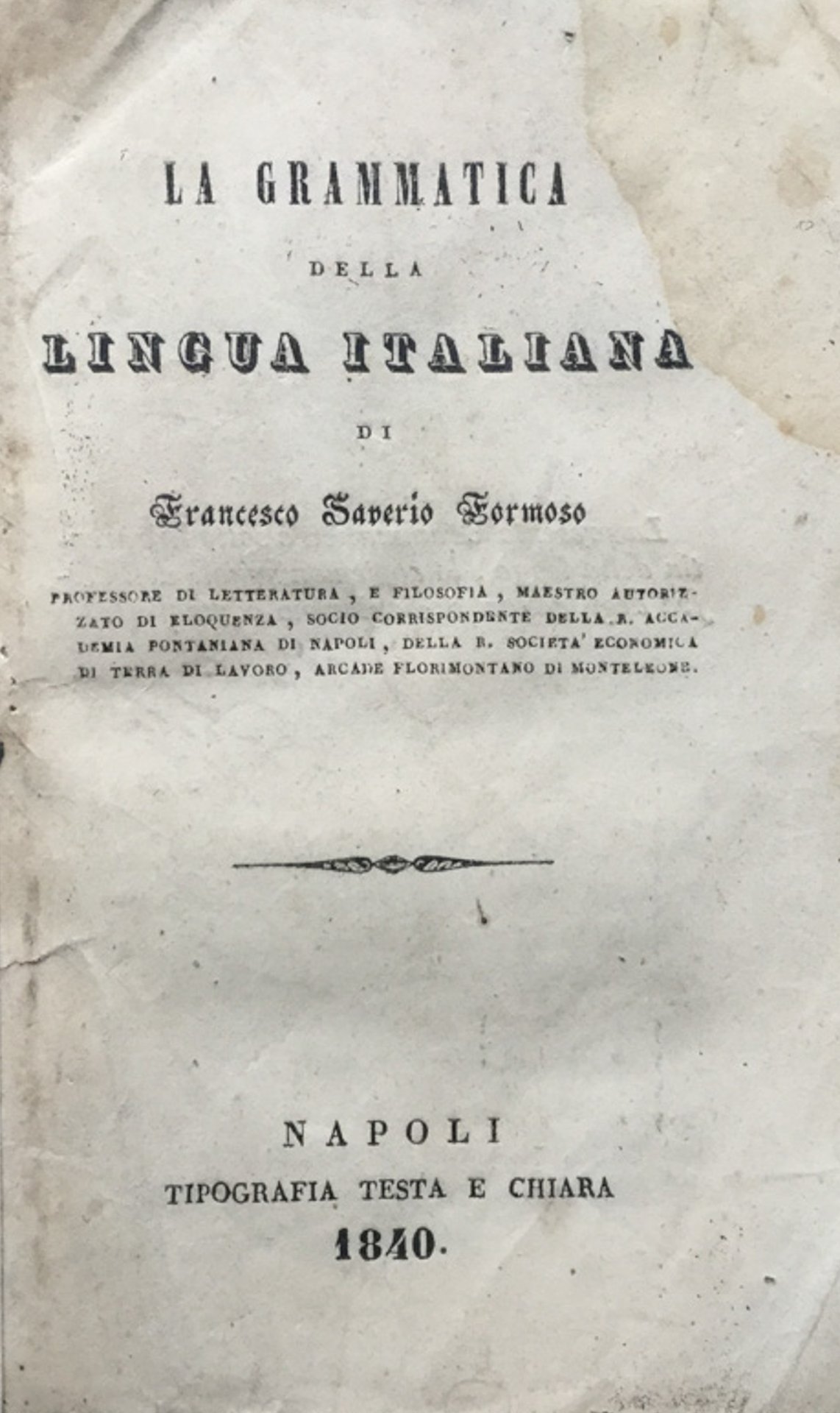 Napoli, Testa e Chiara, 1840, in 8vo, Brossura muta posteriore, 214 pp. 453 - Ba In Ottavi (15-23cm ) Mediocre (Poor) Accettabile