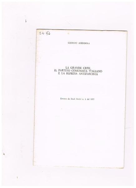 La grande crisi, il partito comunista italiano e la ripresa antifascista. Estratto. | Livres anciens et modernes | Amendola Giorgio.