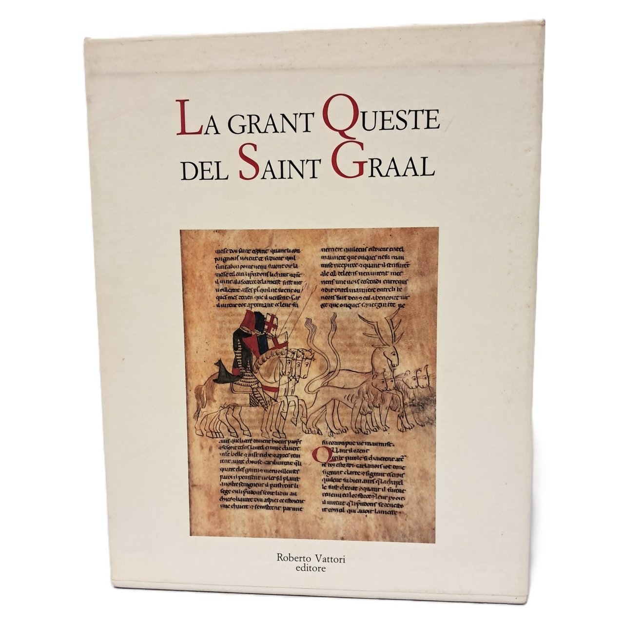 PRIMA EDIZIONE, versione inedita della fine del XIII secolo del manoscritto proveniente dalla biblioteca arcivescovile di Udine con un saggio di Gianfranco d'Aronco, edito con il patrocinio della Cassa di Risparmio di Udine e Pordenone Riproduzione in fac-simile del codice con interventi critici di vari autori: Un romanzo per l'Europa di Gianfranco D'Aronco, Qua fà un santo e un cavaliere.Aspetti codicologici e note per il miniatore di Roberto Benedetti; la Queste del Saint Graal in Italia e il manoscritto udinese di Marco Infurna; Leggere per diletto e guardare le figure. Nascita del libro illustrato per una nuova società di lettori e lettrici di Fulvia Sforza Vattovani. Cartonato con sovraccoperta illustrata e cofanetto. Pp. 447. Ottime condizioni.