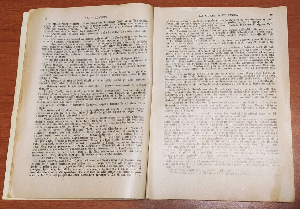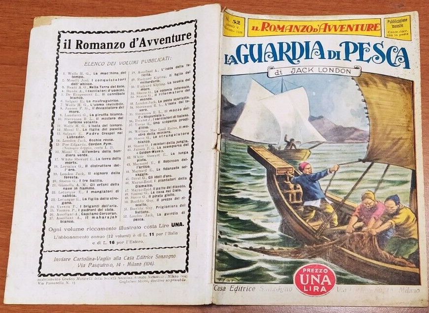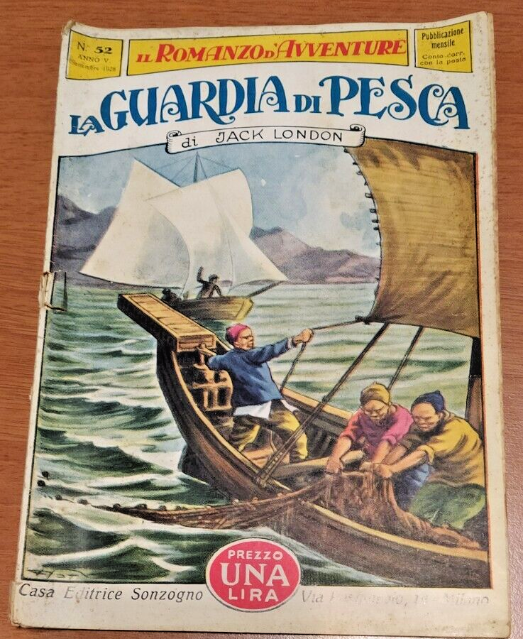 LA GUARDIA DI PESCA di Jack London 1928 Sonzogno Romanzo d'Avventura Libro