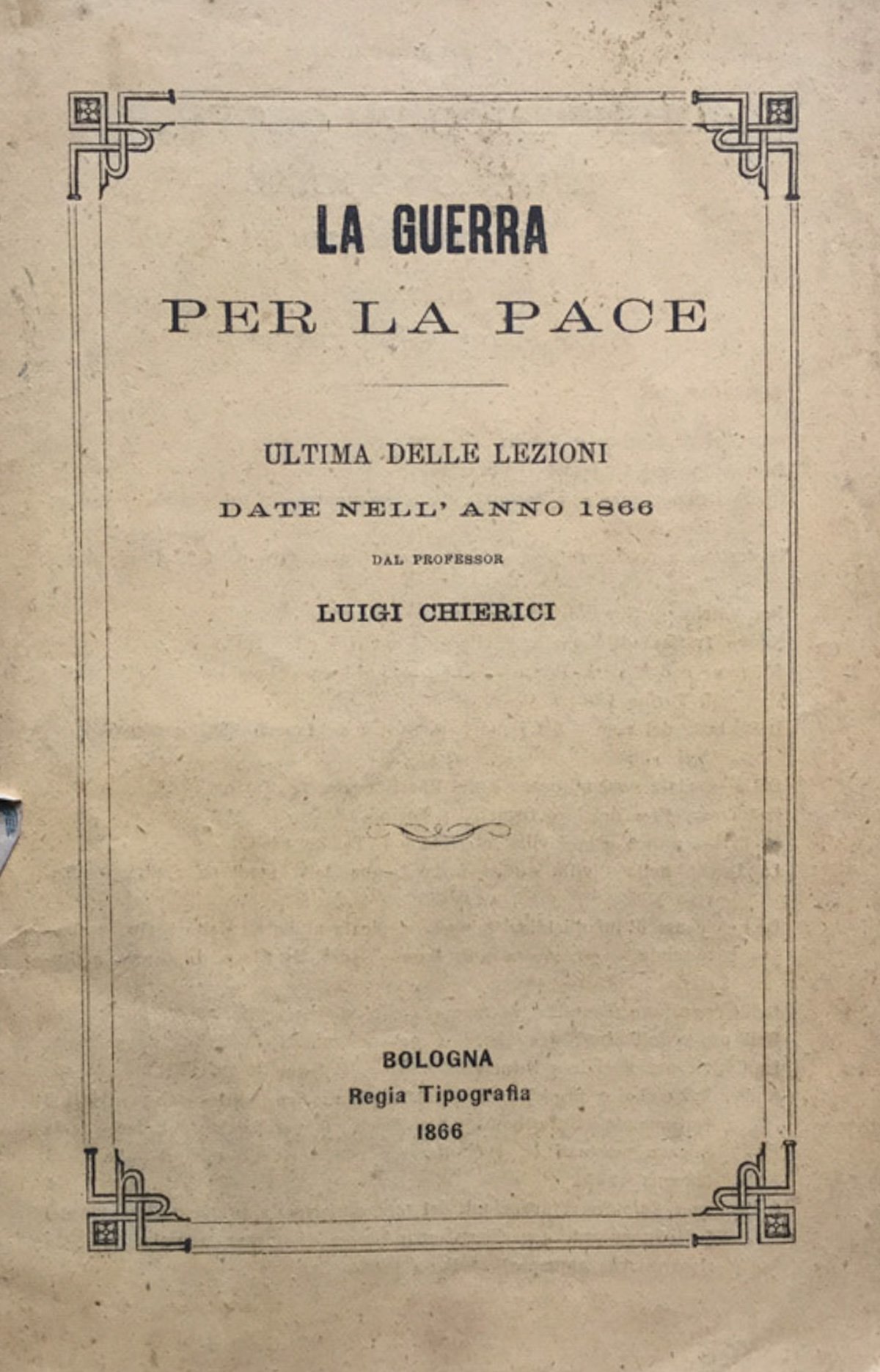 Bologna, Regia Tipografia, Bologna, in 16mo. Brossura, 36 pp. Ultima delle lezioni date nell'anno 1866. Luigi Chierici, bolognese, fun un patriota liberale italiano, esiliato dal papa durante il risorgimento. 940 - V In Sedicesimi (10-17cm ) Buono (Good) Buono