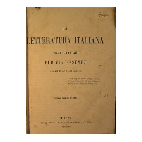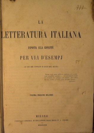 La letteratura italiana esposta alla gioventù per via d'esempi