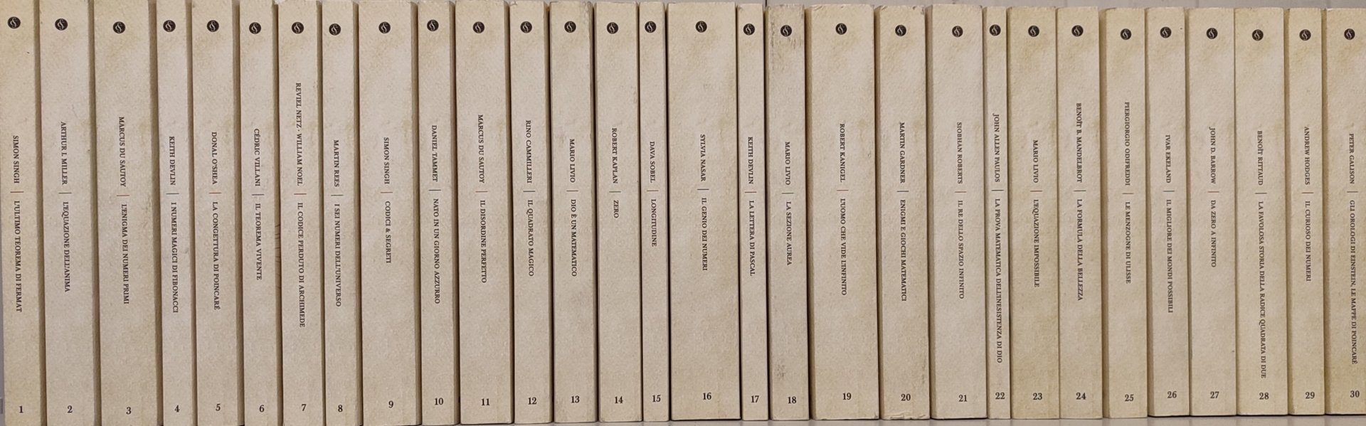 La matematica come un romanzo. Collana. Volumi da 1 a 30. Opera usato proveniente da collezione privata. Le copertine riportano lievissime tracce d'uso. Le pagine risultano delicatemente indorate dal tempo. in ottavo 10.000 Molto buono (Very Good) Opera usato proveniente da collezione privata. Le copertine riportano lievissime tracce d'uso. Le pagine risultano delicatemente indorate dal tempo..