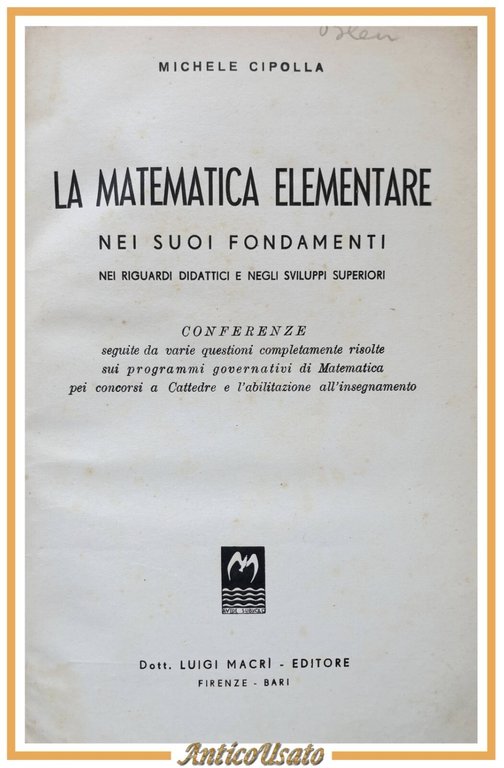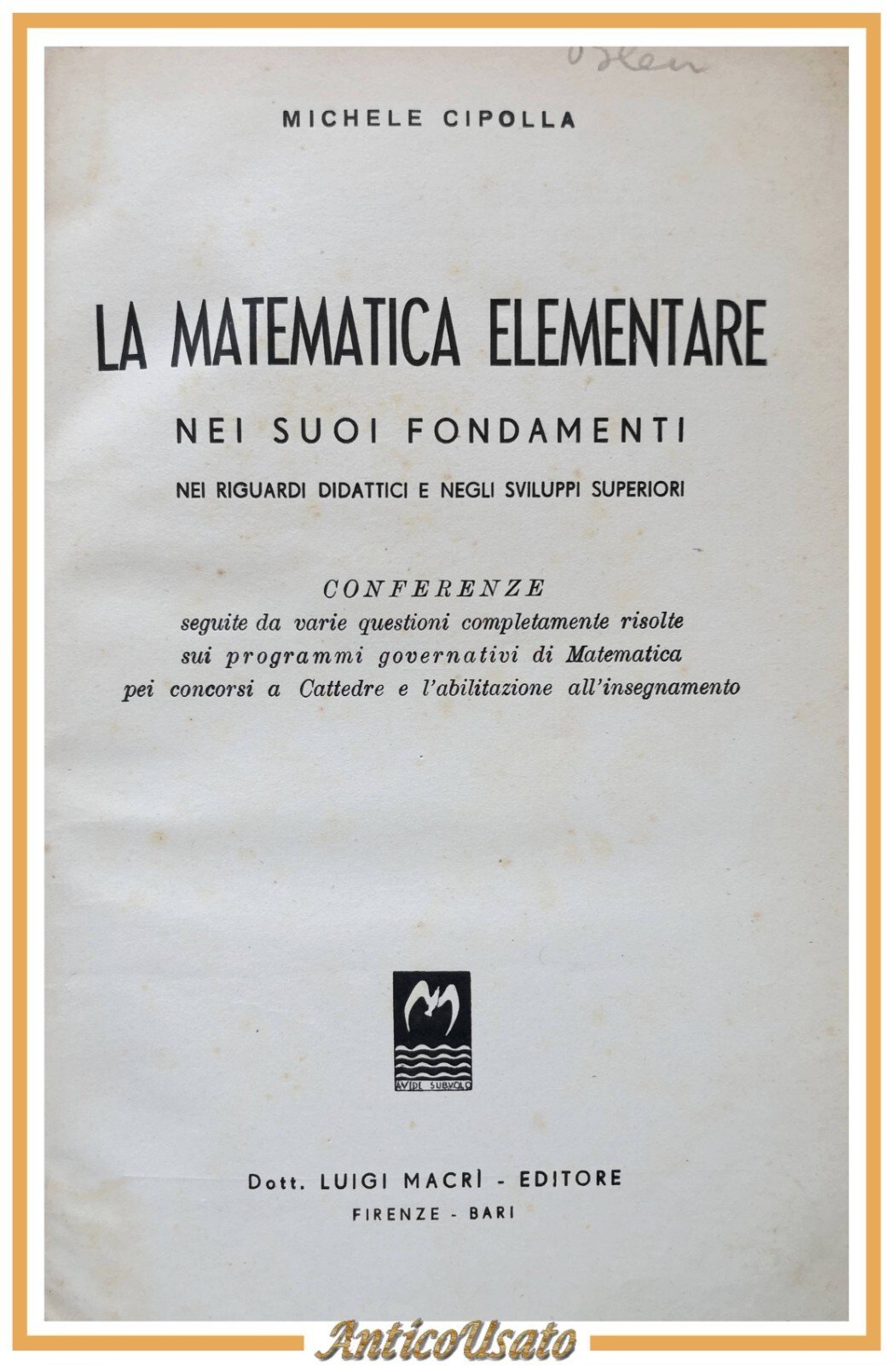 LA MATEMATICA ELEMENTARE di Michele Cipolla Libro Luigi Macri anni '50