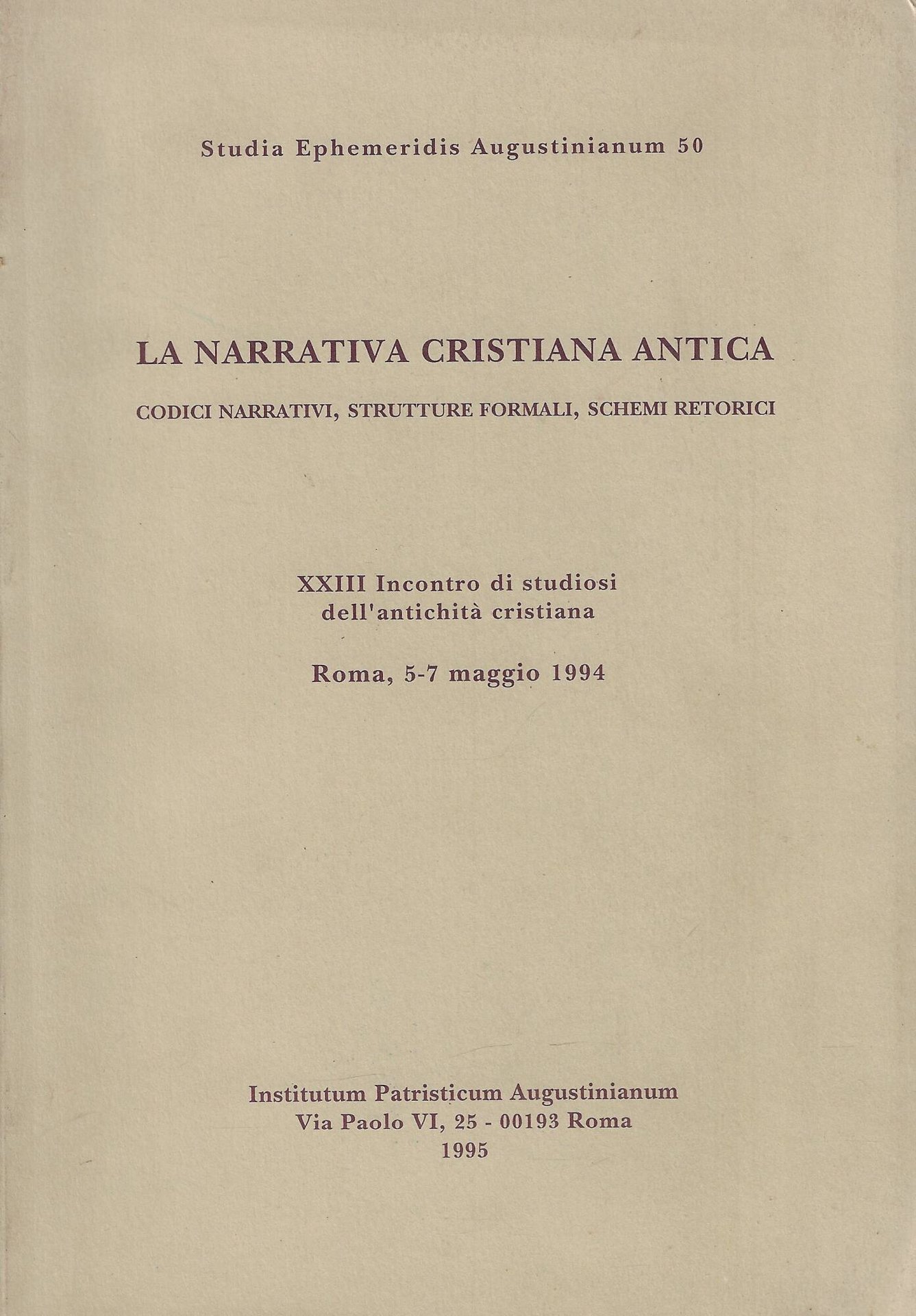 La narrativa cristiana antica: codici narrativi, strutture formali, schemi retorici