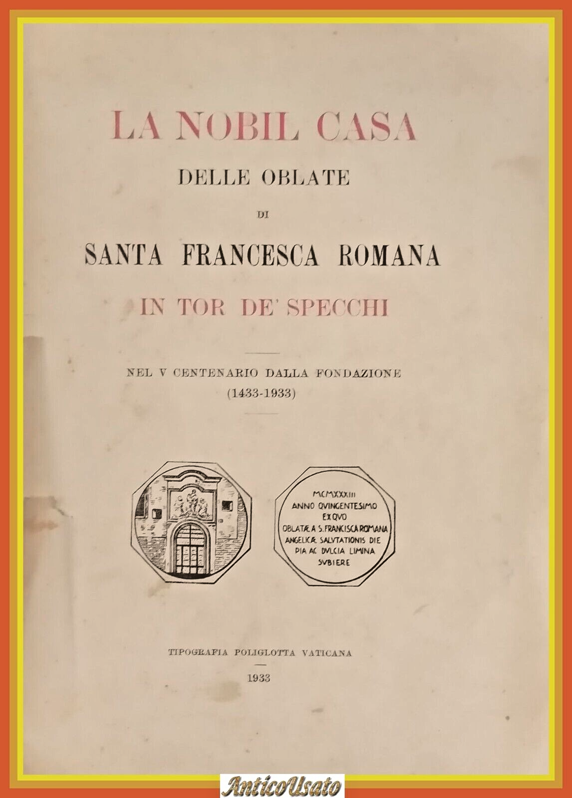 LA NOBIL CASA DELLE OBLATE DI SANTA FRANCESCA ROMANA IN TOR DE SPECCHI nel V centenario dalla fondazione (1433 - 1933).