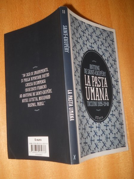 ANTOINE DE SAINT-EXUPéRY, la pasta umana. taccuini 1935-1940 - Utet extra, I ed 2015 - copertina morbida con alette interne, pag. 101, formato tascabile - più che ottimo stato complessivo