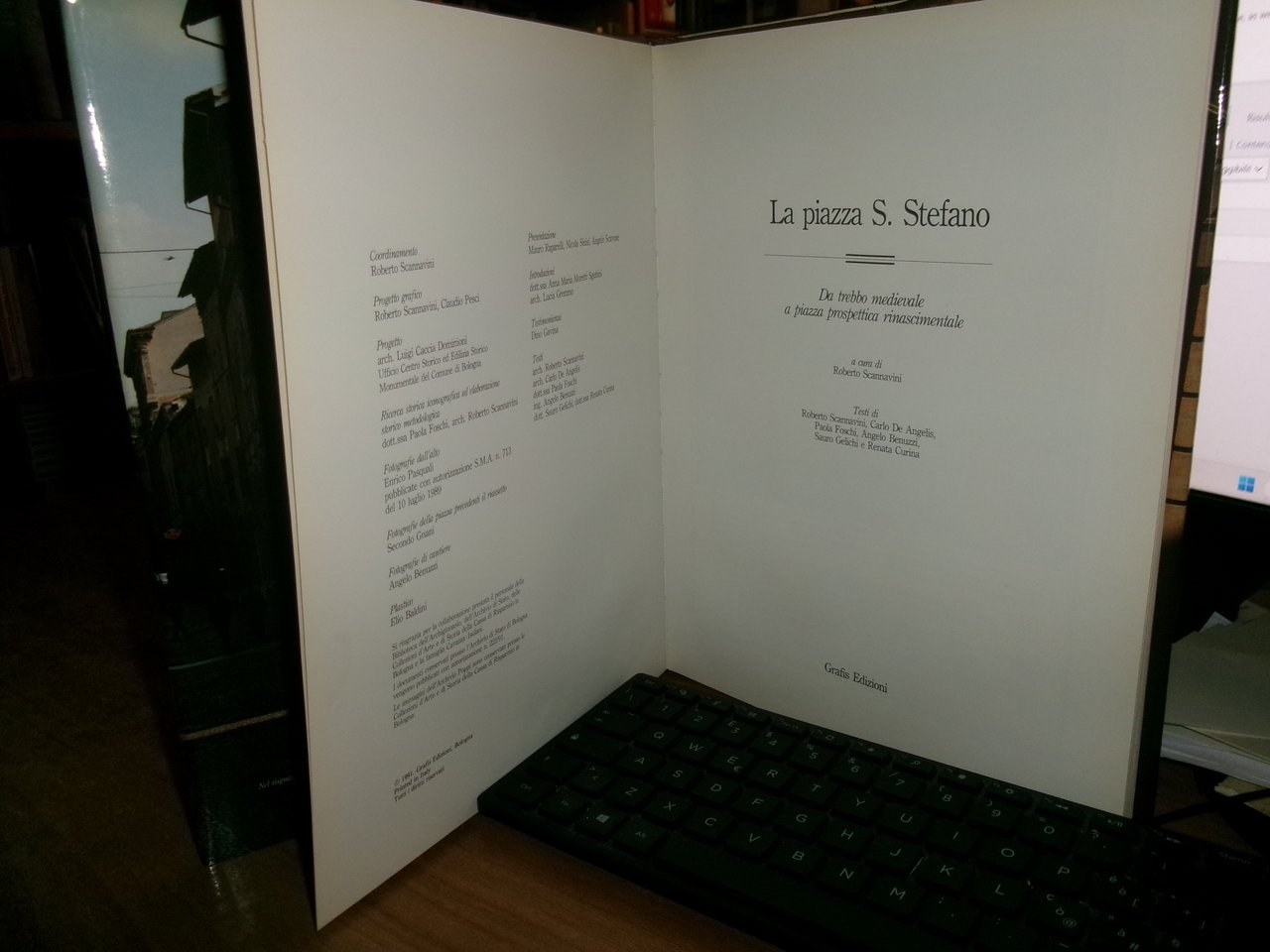 A cura di Roberto Scannavini. Bologna, Grafis Edizioni, 1991. La Piazza S. Stefano da Trebbo Medievale a Piazza Prospettica Rinascimentale. In-4°, tela edit. con sovracopertina ill. a col. 122, (2) pp. con numerose illustrazioni la maggior parte a color n.t. Ottimo stato. Neg. Bol. mob. 20