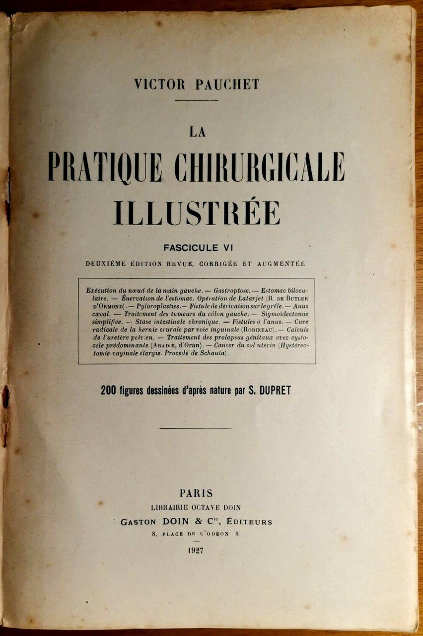 LA PRATIQUE CHIRURGICALE ILLUSTREE di Victor Pauchet 1930 cancro utero illustrat
