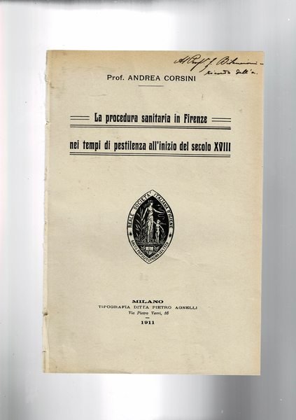 La procedura sanitaria in Firenze nei tempi di pestilenza all'inizio del sec. XVIII. Estratto.